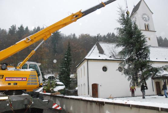 Schon fast geschafft: Der Baum bei der Kirche Leerau