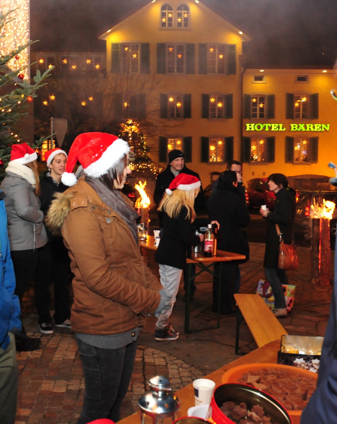 Die zu nächtlicher Stunde leuchtende Fassade des Gemeindehauses ist mit einem wirkungsvollen Kontrapunkt ergänzt worden, der auch tagsüber in schönster Weise zur Geltung kommt und viele Blicke von Passanten auf sich zieht. Das Reinacher Adventsfenster mit der Nummer 2 und den beiden geschmückten Weihnachtsbäumen links und rechts vom ehemaligen Eingangsportal stehen dem altehrwürdigen Haus sehr gut an und verleihen ihm eine ganz besondere Wirkung und Ausstrahlung. Entsprechend begeistert fielen die Kommentare der Besucher aus, die der offiziellen Einweihung beiwohnten. Der Schein von Finnenkerzen sowie heisser Punsch und Weihnachtsgebäck boten ideale Rahmenbedingungen, um sich auf die bevorstehenden Festtage einzustimmen.