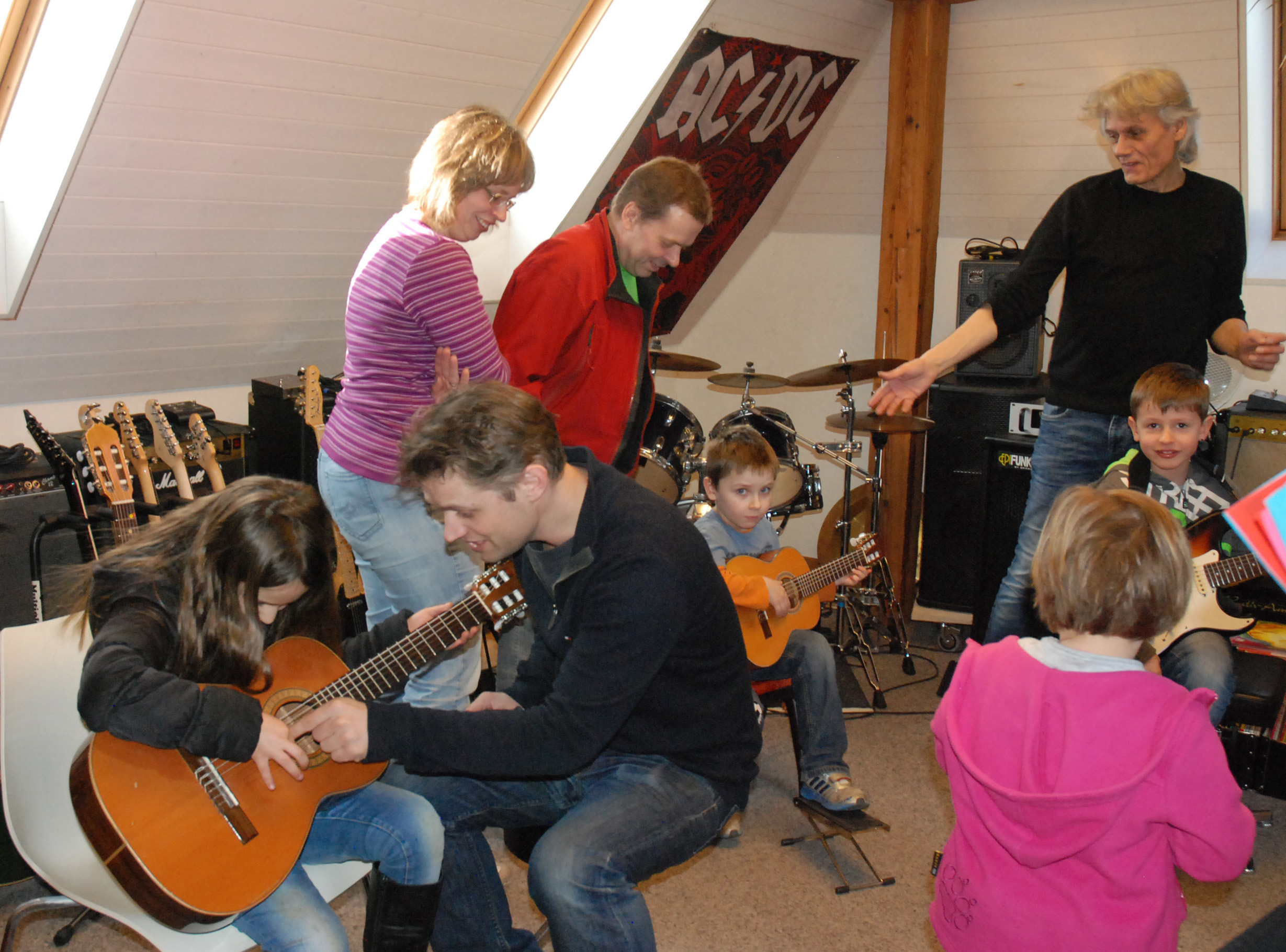 Die Gitarrenlehrer sind am Infomorgen immer voll beschäftigt.