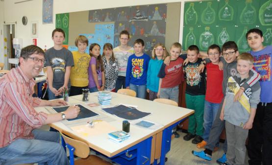 Daniel Gerhard erklärt seiner Gruppe die Philosophie des Malers Paul Klee
