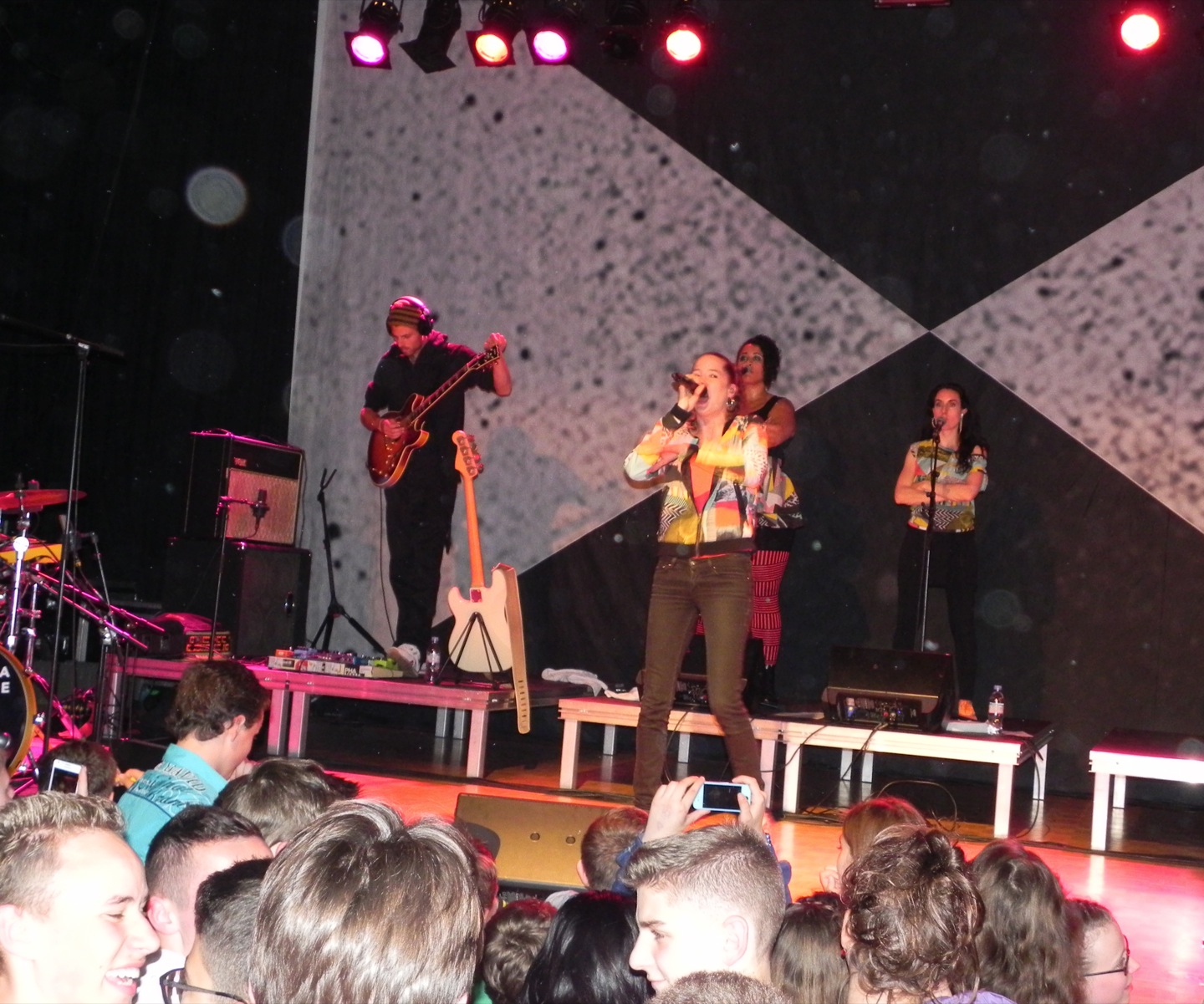 Erwartungsgemäss trafen die jungen Zuhörer am Eventtag schon lange vor Konzertbeginn auf dem Schulgelände ein. Die besten Plätze vorne an der Bühne waren schnell belegt und in der Halle blieb genügend Platz zum Mittanzen. Gespannt warteten alle auf die erste Tuchfühlung mit der Band und der bekannten Sängerin. – Die Bernerin Stefanie Peter hatte selber im zarten Alter von 16 Jahren mit ersten Auftritten als Beatboxerin begonnen; später kamen auch Rap und Reggae dazu. Im 2011 erhielt «Steff la Cheffe» den Swiss Music-Award für das «Best Talent National».– Während rund anderthalb Stunden gelang es ihr zusammen mit ihren Musikern und dem Backgroundchor die Zuschauer für ihren Musikstil zu begeistern. Für die Unterkulmer hatte sie ihren bekanntesten Hit «Ha ke Ahnig» bis zuletzt als Dessert aufbewahrt. Das Konzert endete mit diesem musikalischen Höhepunkt. Anschliessend an die Bühnenshow signierte «Steff la Cheffe» unzählige Autogrammkarten für ihre neu gewonnen Fans. Und in der Halle ging die Party als Schülerdisco weiter.