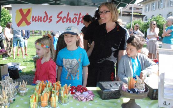 Die einen Kindergärtler hatten "Gesundes Essen", die anderen "Die Schweiz" zum Thema. Gemeinsam mit "Xunds Schöftle" beteiligten sie sich am Wochenmarkt in Schöftland, verkauften Gesundes und tanzten. Siehe auch Wynentaler Blatt Nr. 45 vom 17. Juni 2014.