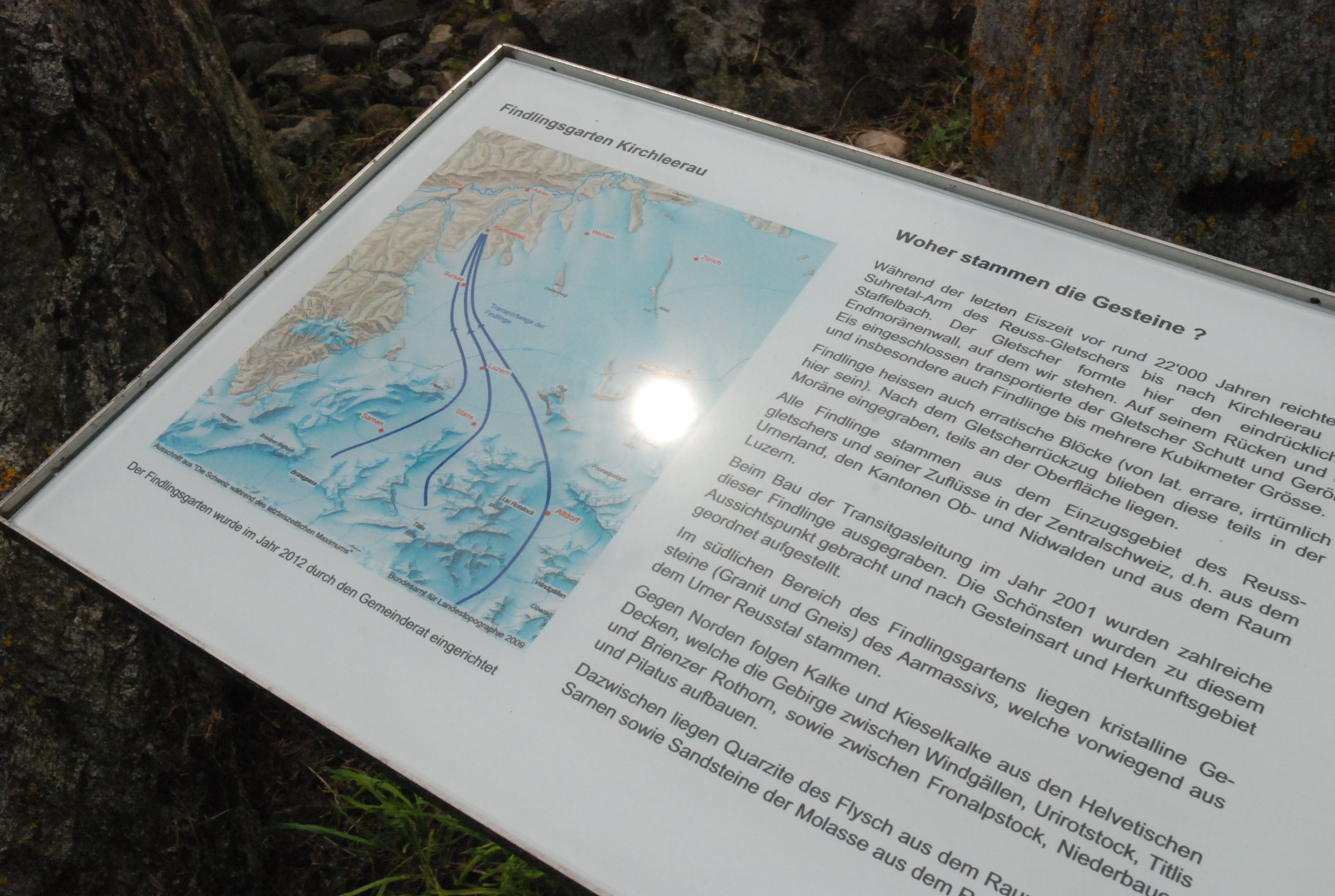 Was lange währt… In Kirchleerau ist der Findling-Garten nun beschriftet. Von jedem Stein wurde die Herkunft durch einen Geologen genau bestimmt. Eine Tafel weist darauf hin. Mehr darüber im Wynentaler Blatt Nr. 60 vom 12. August 2014.