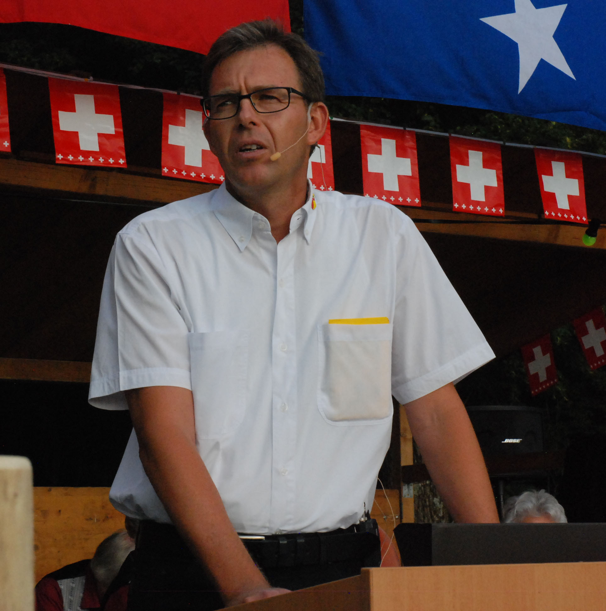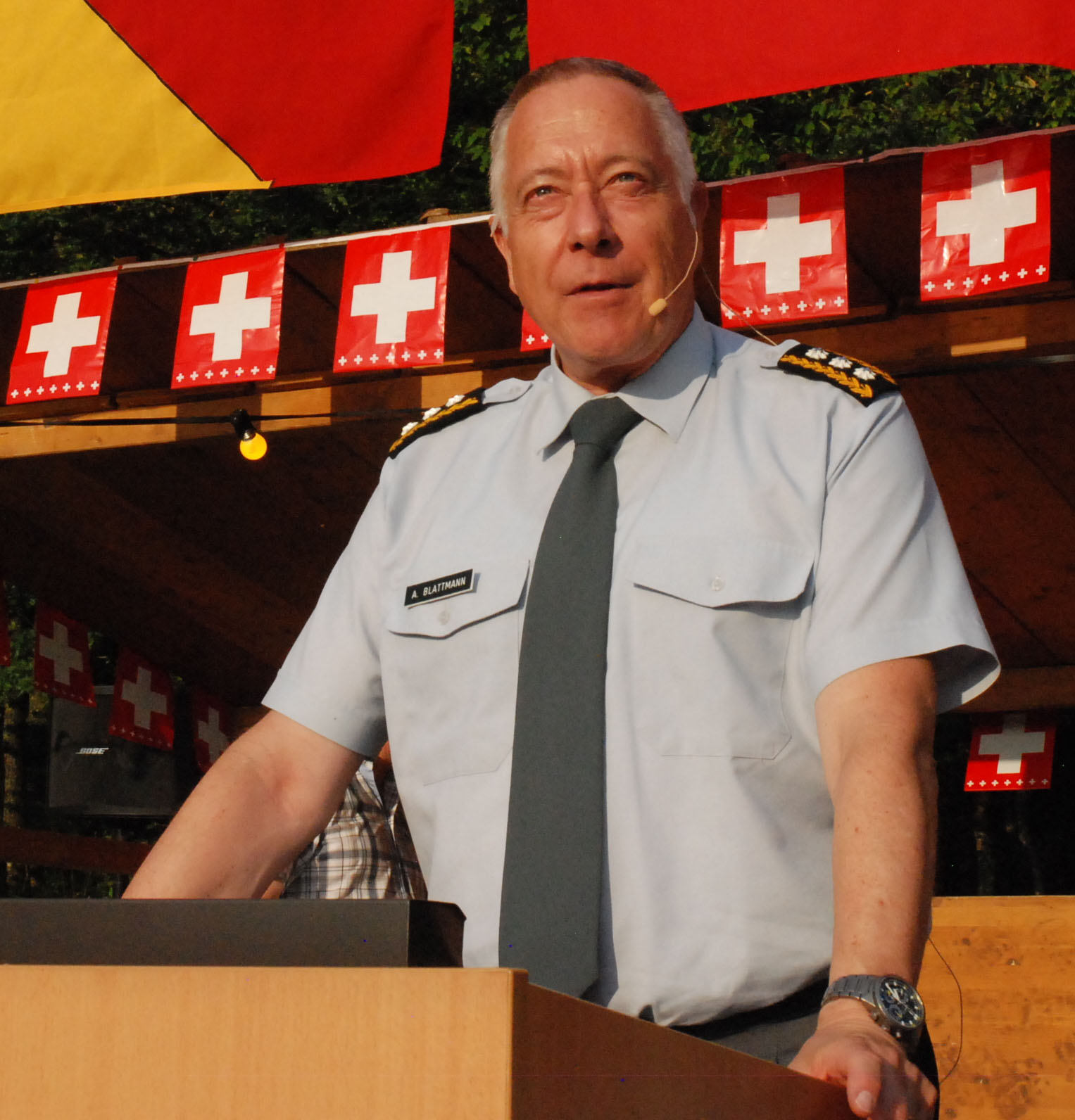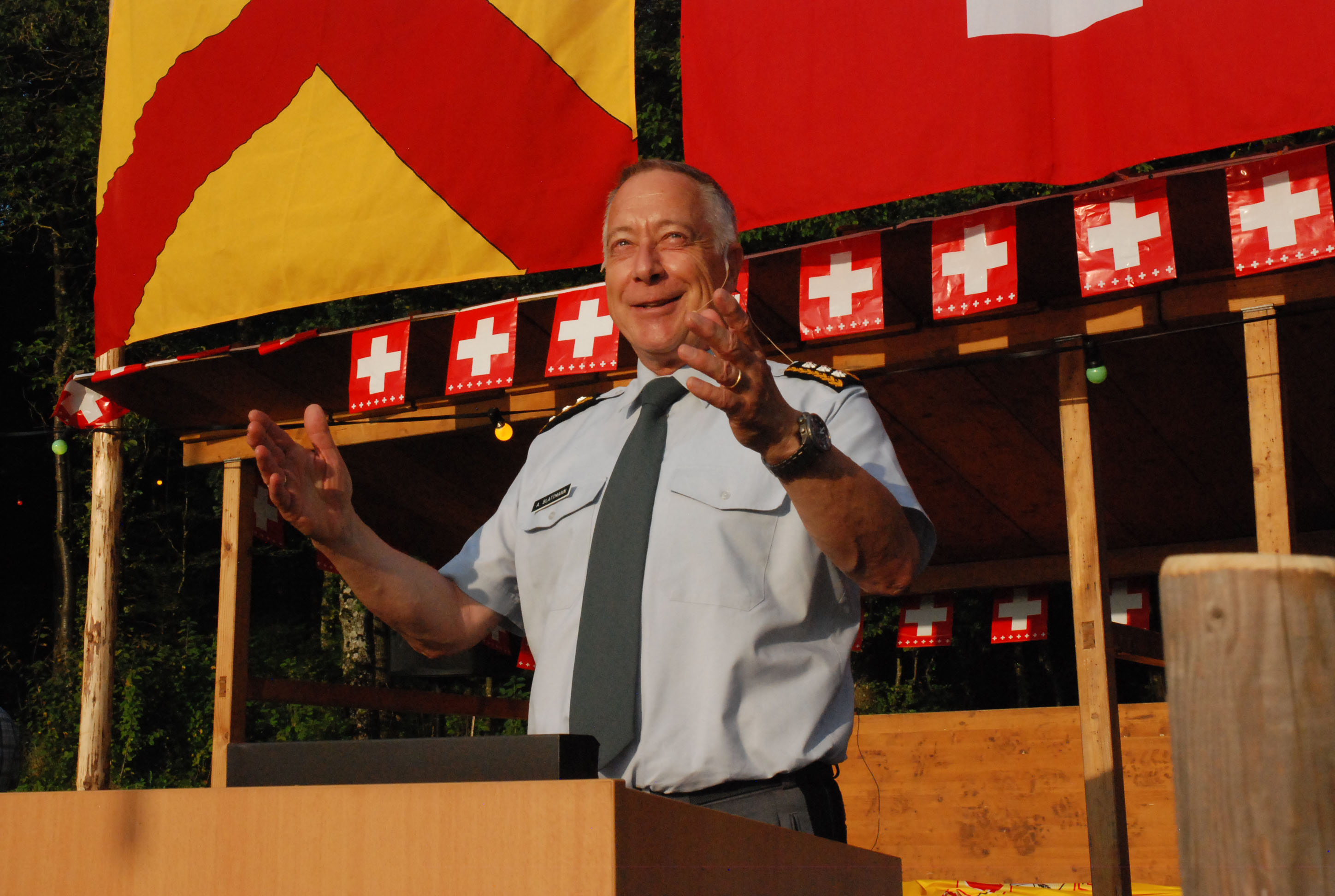 Der Chef der Schweizer Armee, André Blattmann, sprach auf dem Schöftler Blick zur Heimat zu den Gästen. In erster Linie dankte der den Soldaten für ihren Einsatz für eine sichere Schweiz. Mehr darüber im Wynentaler Blatt Nr. 58 vom 5. August 2014.