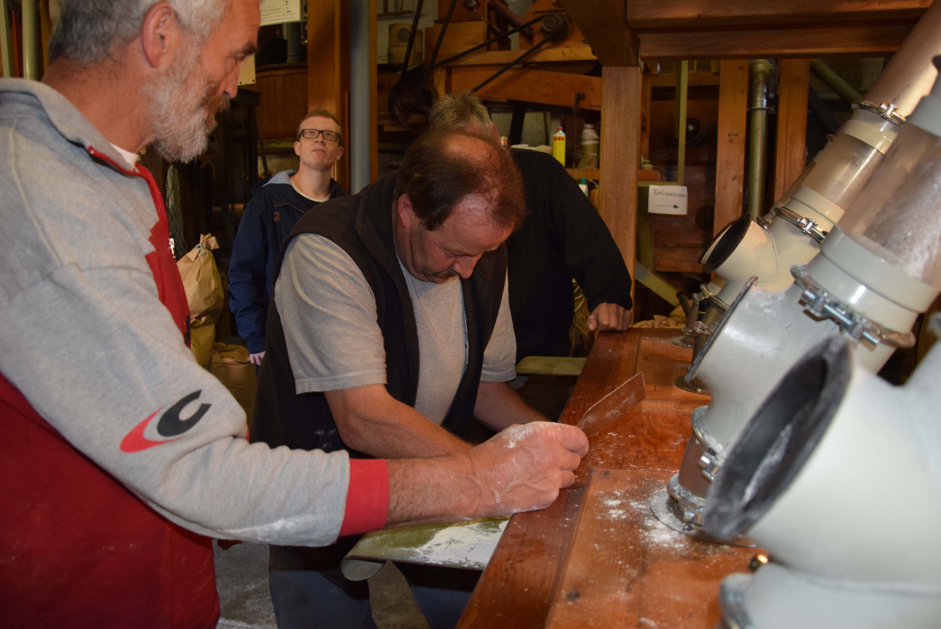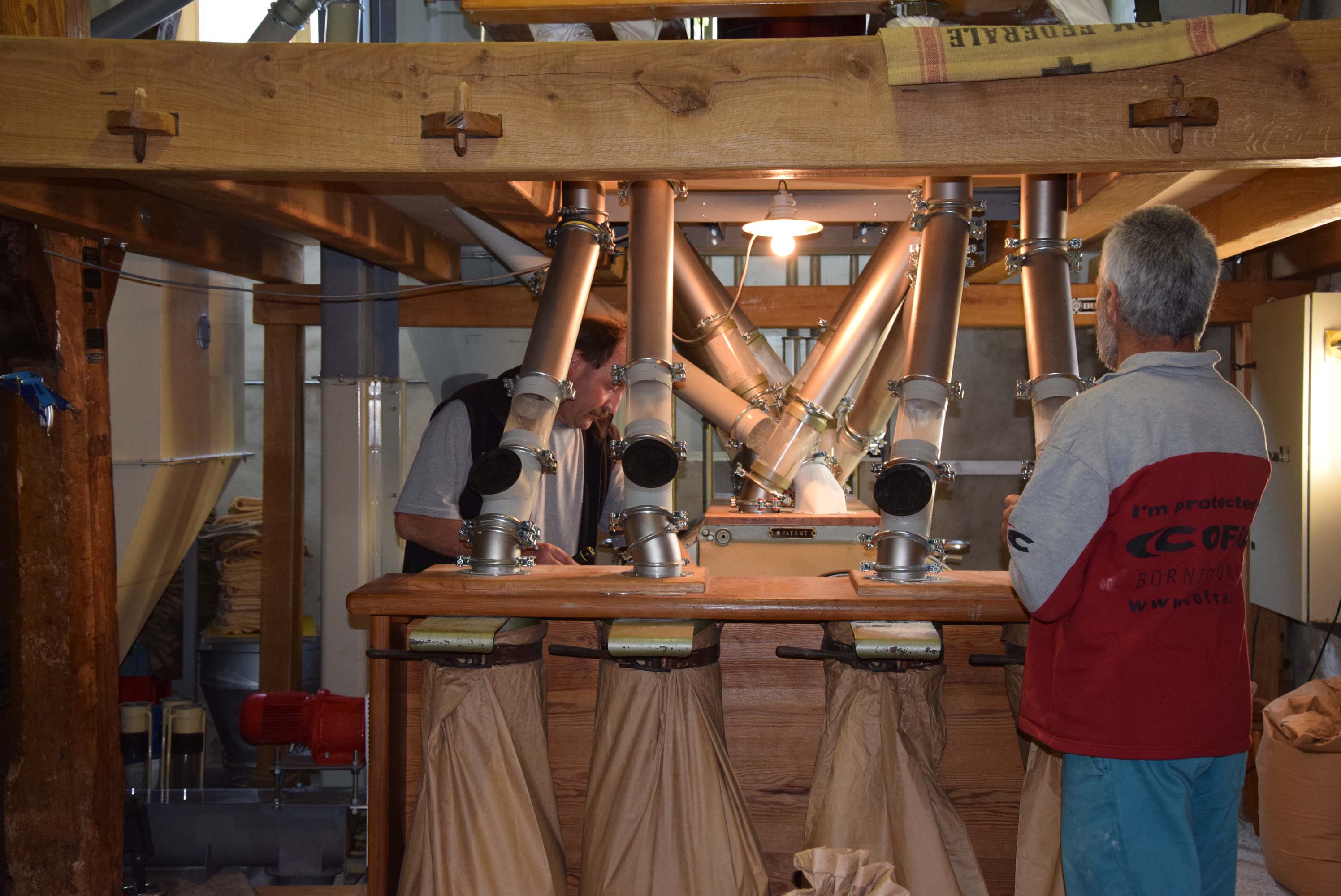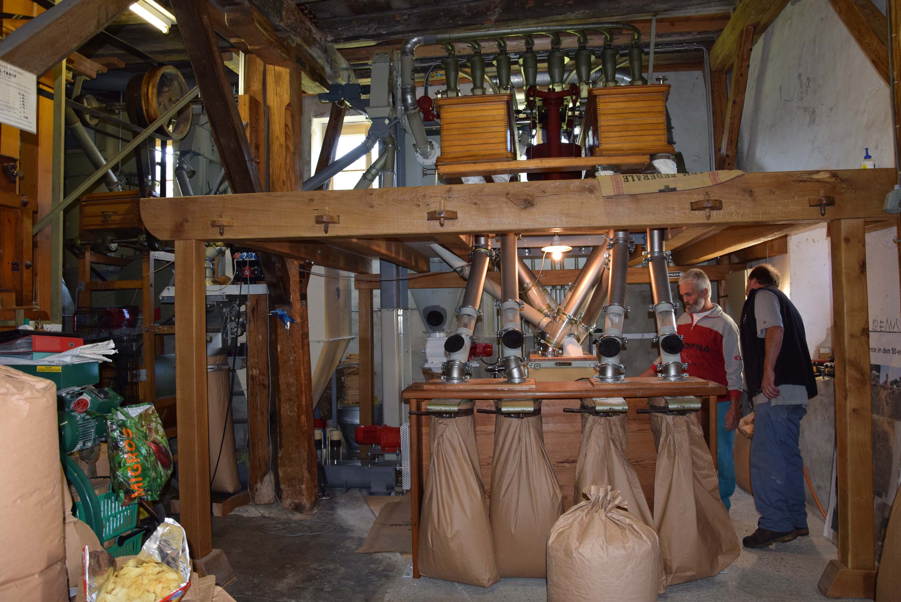 In minutiöser Kleinarbeit hat Ruedi Schlatter aus Bestandteilen von Mühlen, die aus der Zeit des zweiten Weltkriegs stammen, ein neues Mahlwerk gebaut, mit dem nun produziert wird. Mehr darüber im Wynentaler Blatt Nr. 74 vom 30. September 2014.