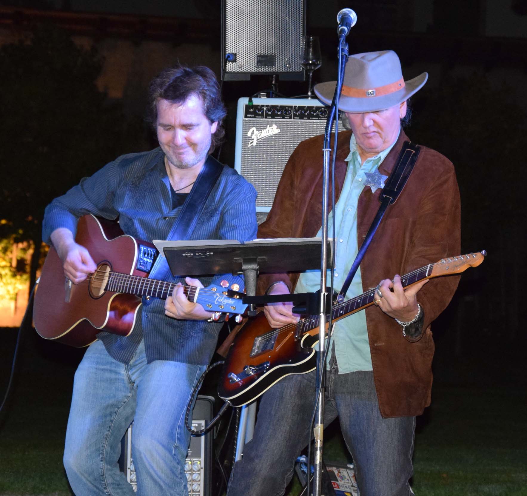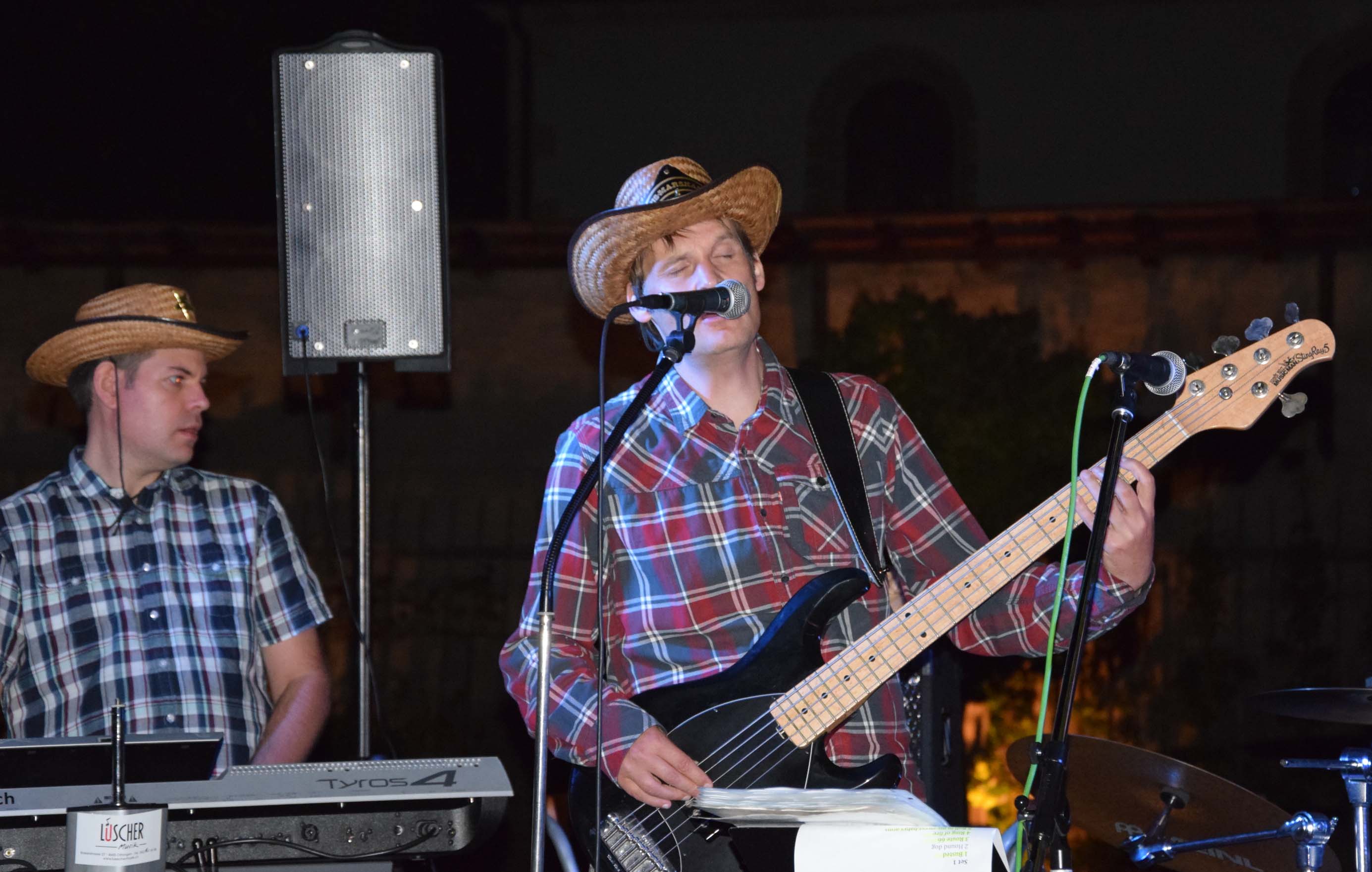 Daniel Knechtli, Tschändu Muhmenthaler, Fabian Gaberthüel, Chris Regez und Gogo Frei sorgten am lauen Freitagabend im Schöftler Schlosspark für echtes Western-Feeling. Die Crew vom Schlossgarten "spielte" mit. Mehr im Wynentaler Blatt Nr. 68 vom 9. September 2014.