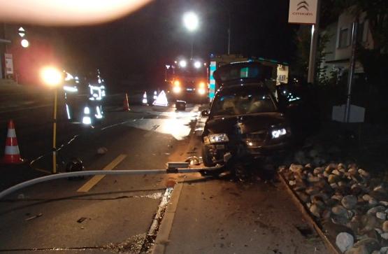 einem Kandelaber. Das Fahrzeug erlitt dabei