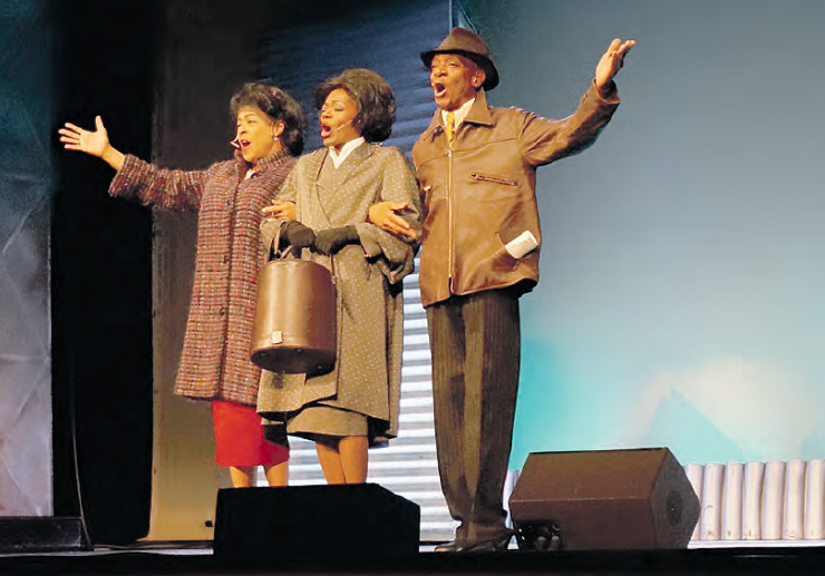 Rund 200 Gospelanhänger sahen das Musical über Mahalia Jackson, vorgetragen von der begnadeten Gospel-Sängerin Joan Orleans (Bildmitte). Ihre Geschichte wurde auf der Bühne sehr gut dargestellt und damit ist der Saalbau mit einer passenden Vorstellung in die Weihnachtszeit gestartet.