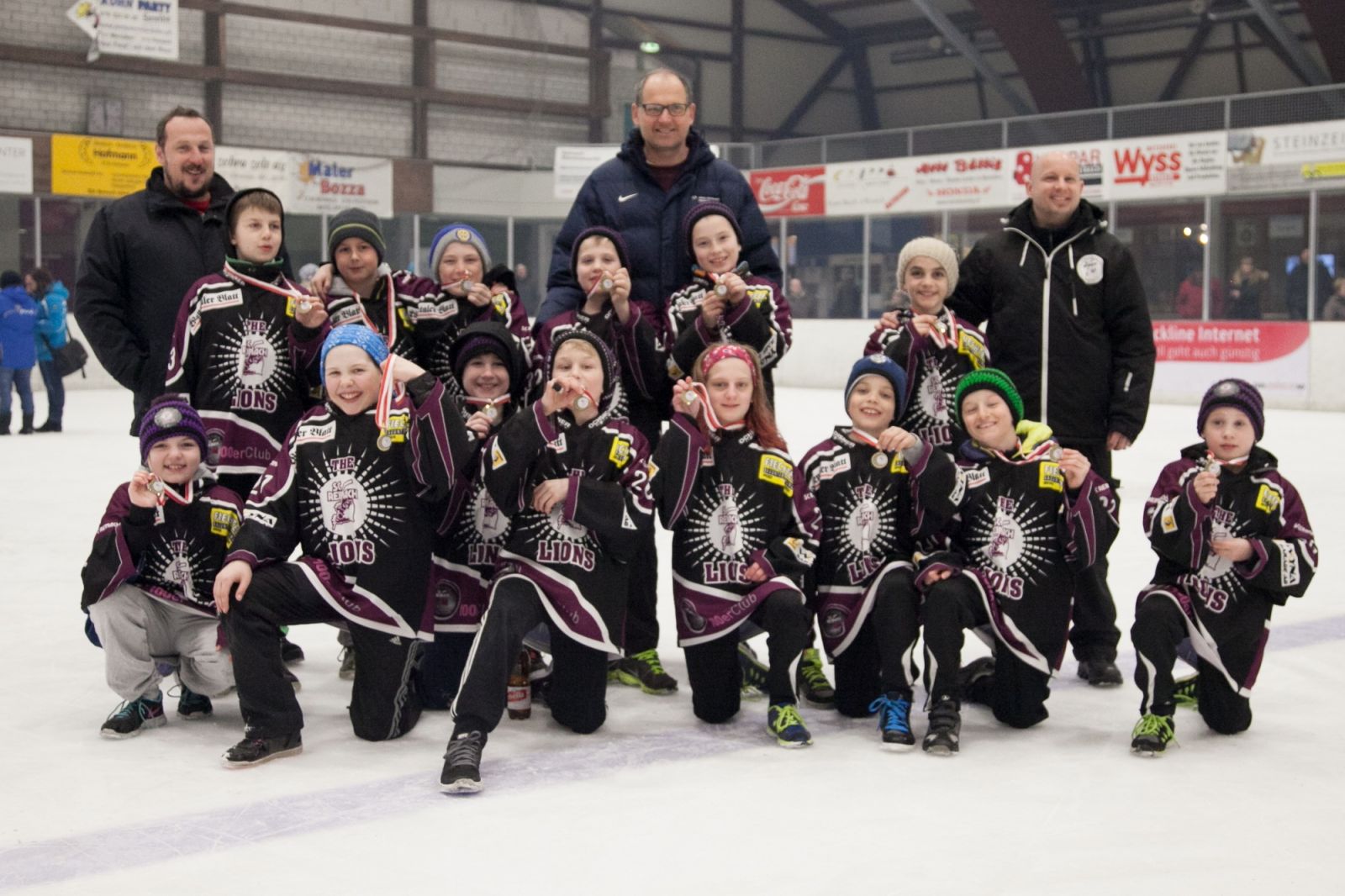 Am Wynentaler Cup konnte das Team gleich zu Turnierbeginn, als Sieger vom Eis. Zwar konnte man die Partie gegen den EHC Sursee nur knapp für sich entscheiden, doch die Kids haben sich gut im Zusammenspiel präsentiert und gezeigt, dass sie diese Saison viel gelernt haben. Beim zweiten Spiel gegen den EVDN Dielsdorf konnte man gleich zu Beginn deutlich in Führung gehen, doch Dielsdorf drehte auf und auf einmal wurde es noch knapp, doch am Ende reichte es auch da zu einem Sieg. Dann wurde es ganz spannend! Gegen die Mannschaft des EHC Burgdorf Knights gerieten die Reinacher mit 3:0 in Rückstand und für einen Moment schien es, dass die Mannschaft dieses Spiel deutlich verlieren würde. Doch die motivierenden Worte und Anfeuerungsrufe der Trainer Peter Küng, Patrick Voigt und Marc Eichenberger liessen einen Ruck durch die Mannschaft gehen. Und als dann der erste Treffer gelang, war der Kampfgeist geweckt. Mit grossartigem Einsatz konnte der SC Reinach das Spiel noch drehen und mit einem Tor Vorsprung für sich entscheiden. Die Freude bei Trainier, Spieler und Zuschauer war gross. Nach einer kurzen Mittagspause stand dann noch das letzte Gruppenspiel gegen den EHC Biel Spirit auf dem Programm. Biel spielte sehr gut und dieses Mal mussten sich die Kids von Reinach geschlagen geben. Doch 9 Punkte aus 3 Spielen, das sollte doch eigentlich für den Einzug in den Halbfinal reichen…. oder doch nicht? Leider nein, es hatten nämlich genau 3 Mannschaften 9 Punkte aus der Vorrunde, jede Mannschaft hat einmal gegen eine dieser Mannschaften gewonnen, also zählte am Schluss das Torverhältnis. Die Enttäuschung war riesig, sie hatten so gut gekämpft und durften jetzt doch „nur“ um den 5. und 6. Rang spielen. Da halfen im ersten Moment auch die lobenden Worte der Trainer, dass sie ihre Sache wirklich gut gemacht hatten nicht. Doch die jungen Eishockey-Cracks rappelten sich wieder auf und kämpften mit der letzten Energie im Platzierungsspiel. Für einen Sieg hat es zwar nicht mehr gereicht, doch spätestens bei der Rangverkündigung und mit der Medaille um den Hals, war die Enttäuschung vergessen.