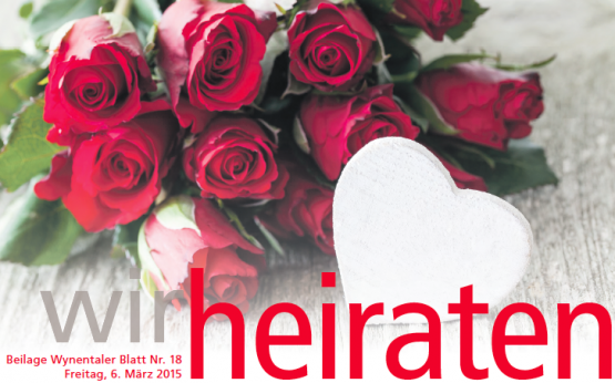 Es ist Frühling, die Temperaturen und die Glücksgefühle steigen und bei vielen Paaren erwacht der Wunsch, ihrer Liebe das Tüpfelchen aufs "i" zu setzen und sich einander das Ja-Wort zu geben. Mit unserer Beilage «Wir heiraten!» kann eigentlich nichts mehr schief gehen. Jetzt im Wynentaler Blatt!