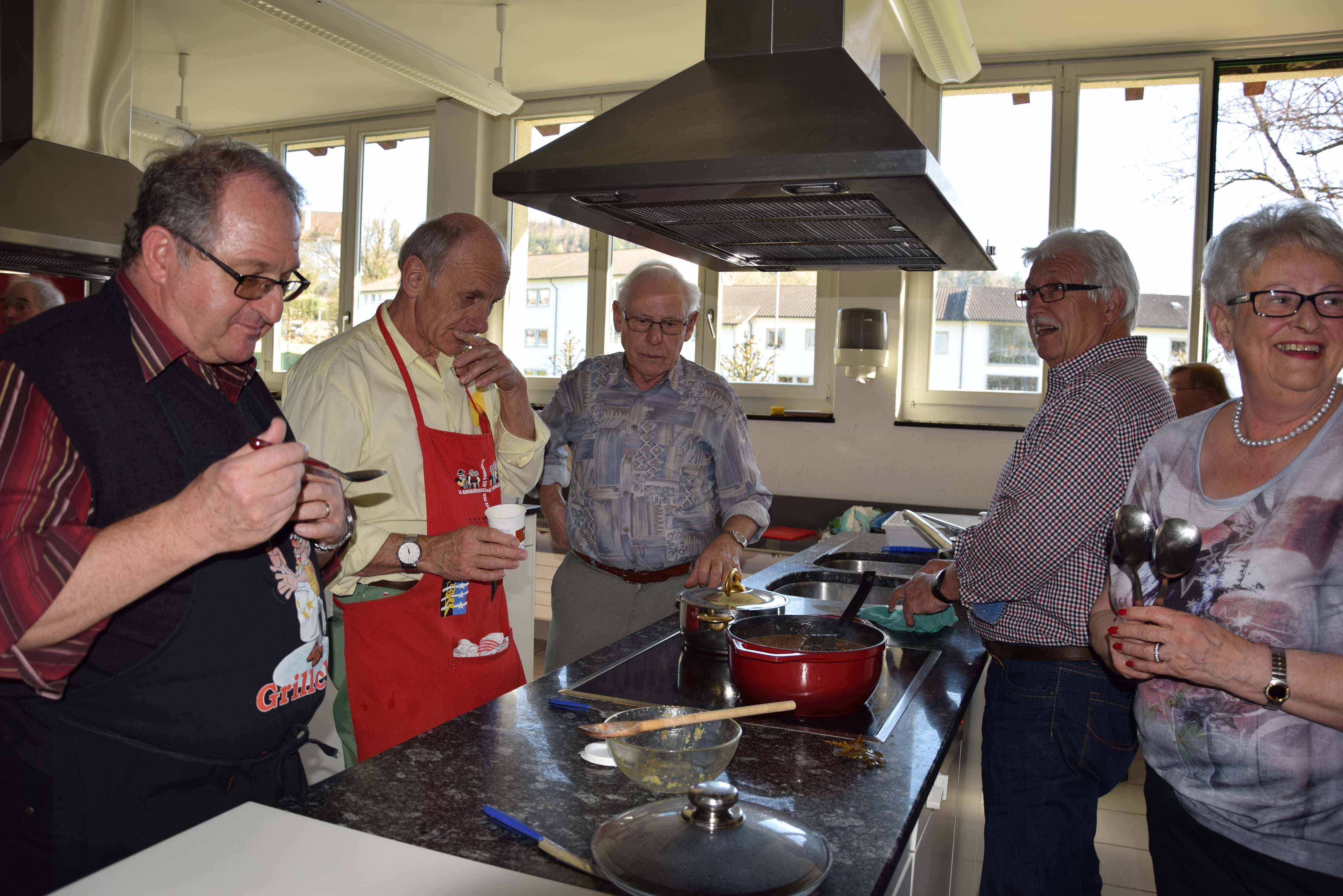 Bereits zum dritten Mal konnten die Schöftler Senioren unter Anleitung der charmanten, stets fröhlichen und höchst kompetenten Cécile Schor die Grundlagen des Kochens erlernen. Zum Abschlussessen waren Ehefrauen und Partnerinnen eingeladen. Mehr im Wynentaler Blatt Nr. 28 vom 14. April 2015.