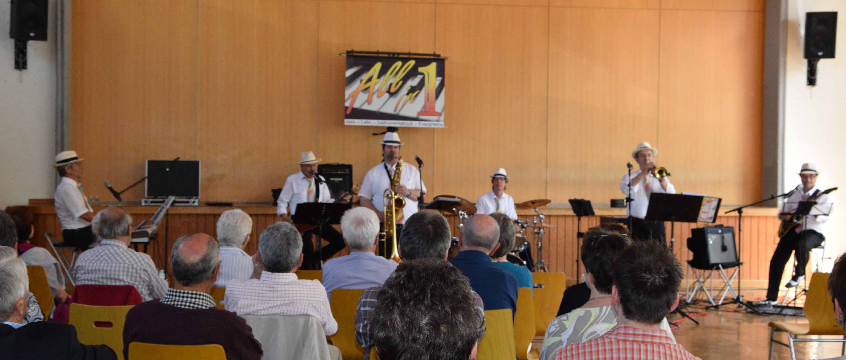 Trotz tollem Wetter wurde die Jazz-Matinée in Muhen nicht als Open-air-Veranstaltung genossen. Verschiedene Umstände führten dazu, dass die Turnhalle Süd als Konzertsaal gewählt wurde – es tönt hier ohnehin besser als im Freien. Mehr darüber im Wynentaler Blatt Nr. 36 vom 13. Mai 2015