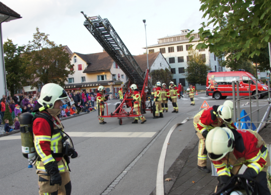 Die Feuerwehr Gränichen erreichte folgende Alarmmeldung; Grossbraand Lochgasse, Überbauung Centrino, mehrere Personen werden vermisst. Sofort rückten die Einsatzkräfte mit Blaulicht und Horn zum Schadenplatz aus, wo sie zur geplanten Übung vom interessierten Publikum empfangen wurden.