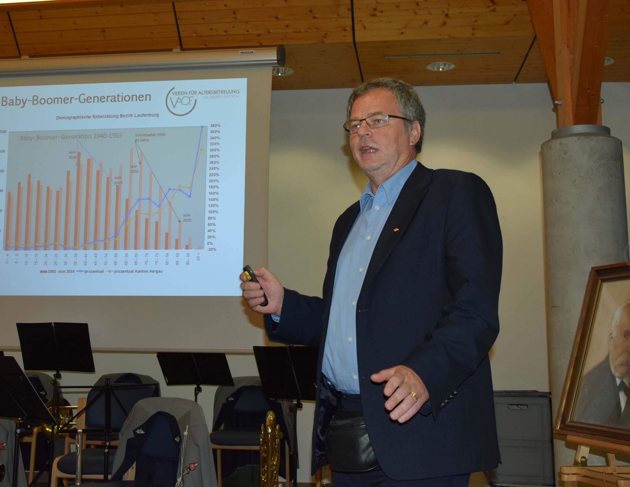 Mit fätzigen Klängen begrüsste die Mänziker Musig die Besucher des Vortrags von Andre Rotzetter über die heutige Art des Älterwerdens. Gesund und erfolgreich in den eigenen vier Wänden bleiben ist angesagt. Der Referent warnte vor der Realisierung zuvieler Pflegebetten, leere Betten belasten den Steuerzahler.