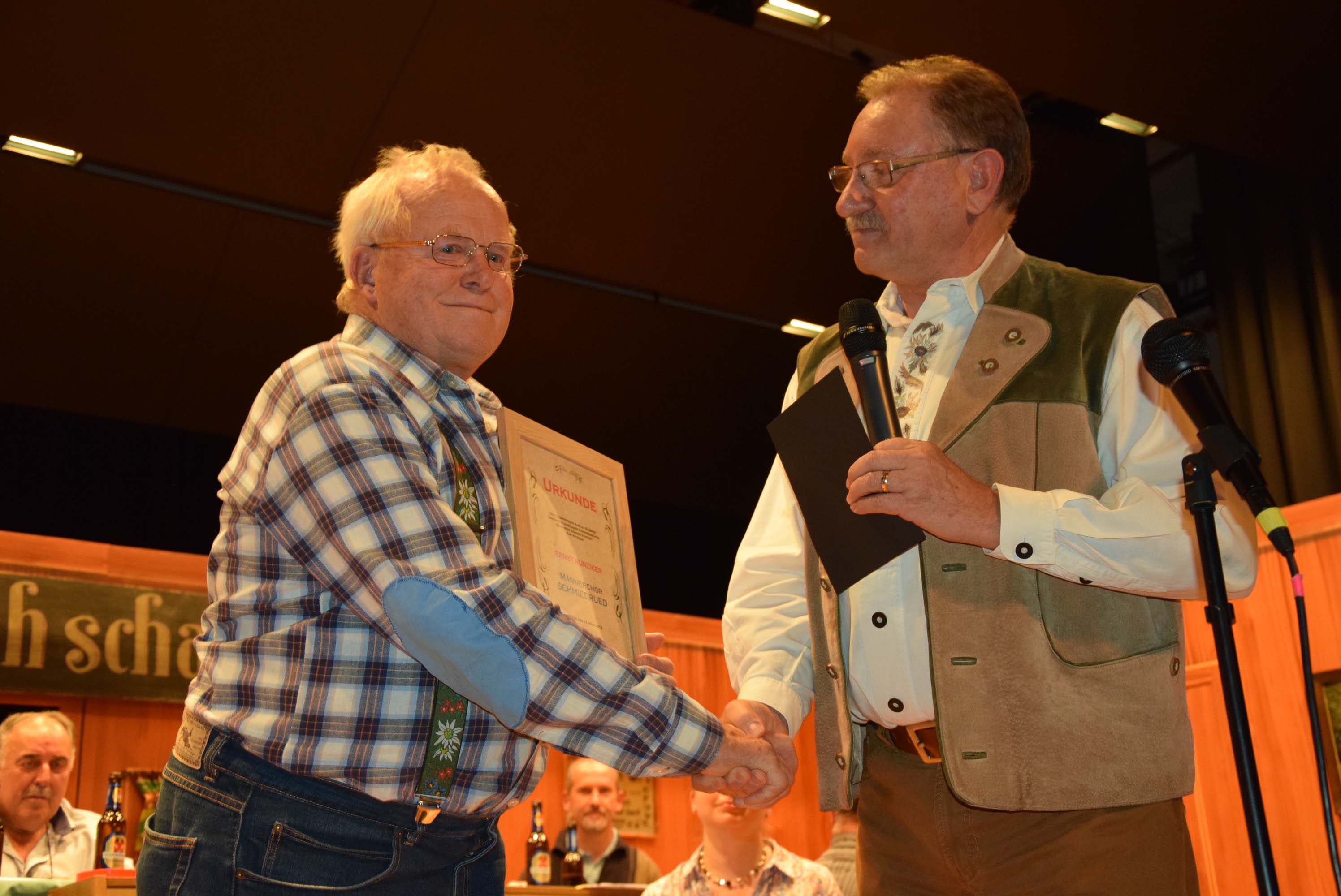 Das Jahreskonzert des Männerchors Schmiedrued stand im Zeichen der Ehrung für die Wirtefamilie Klaus in der Pinte in Walde. Während 136 Jahren bekam der Männerchor hier sein Aprés-Proben-Bierchen. Entsprechend wurde das Konzert als "Stobete in der Pintenwirtschaft" gestaltet.