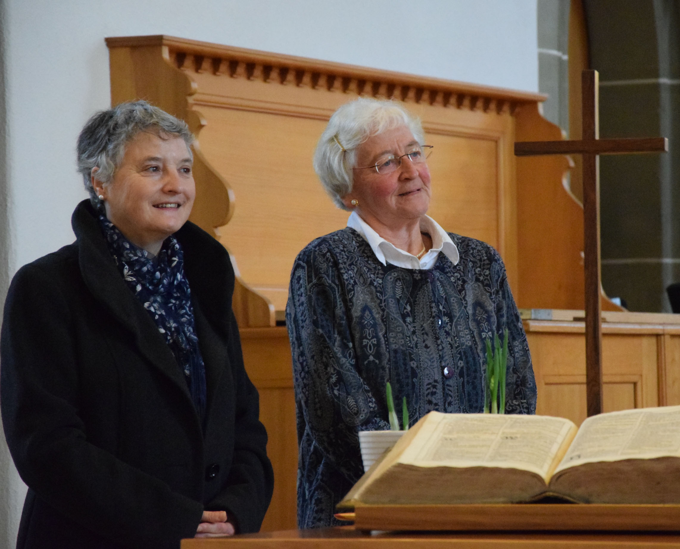 Verabschiedungen in der reformierten Kirchgemeinde Schöftland: Die langjährige Organistin, Yvette Müller, und die umsichtige Sekretärin, Jeanne Hauri, gehen in den verdienten Ruhestand. Pfarrerin Dörte Gebhard richtete Dankesworte an beide und gestaltete den Predigtext entsprechend.