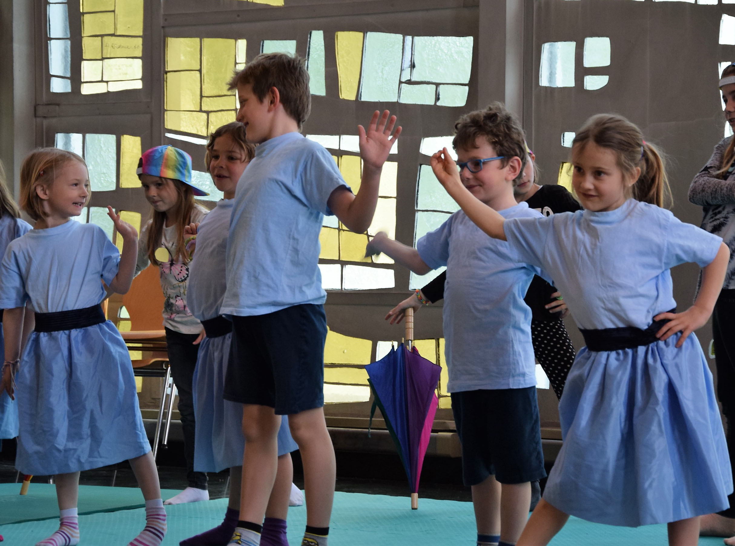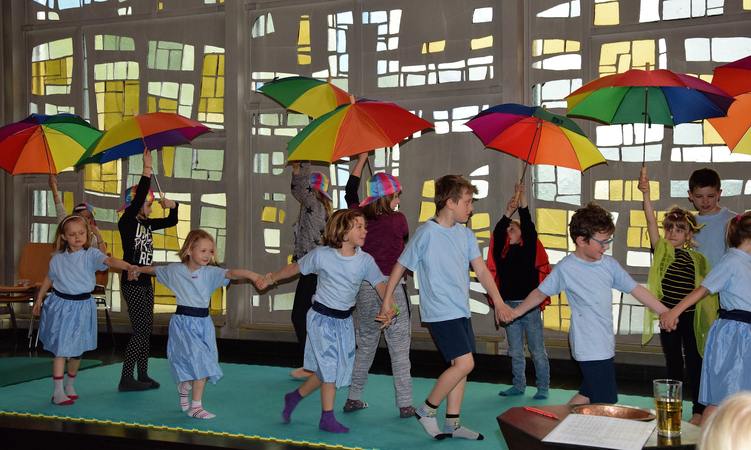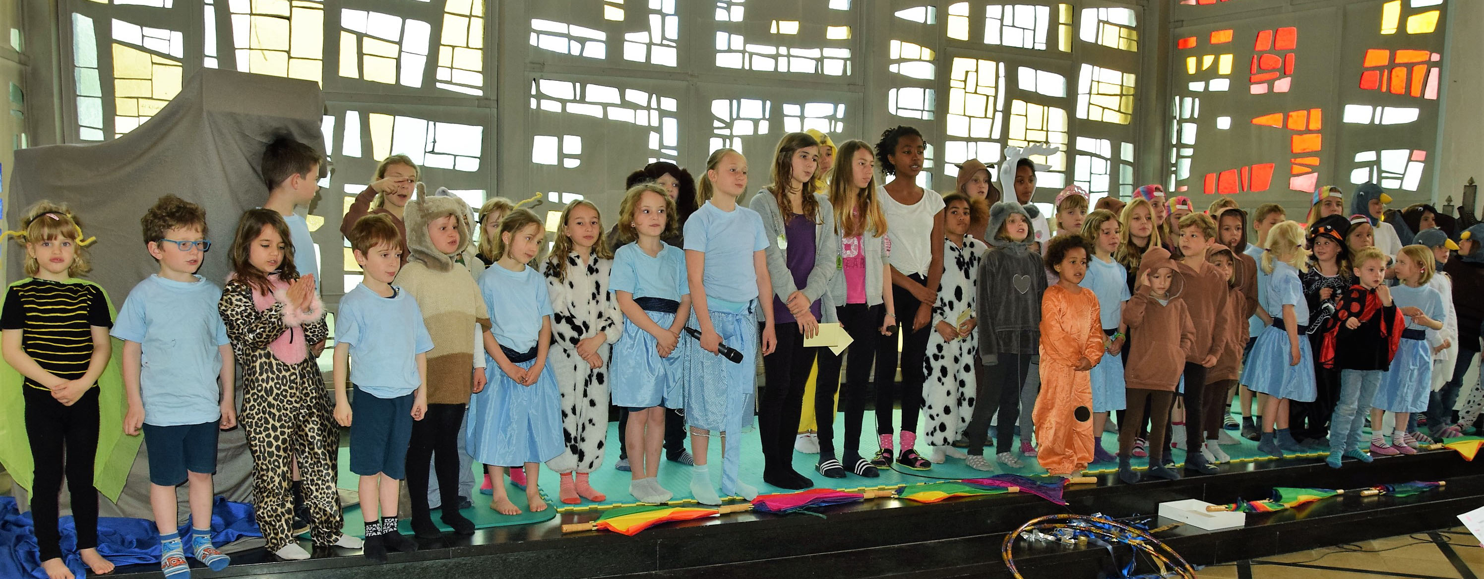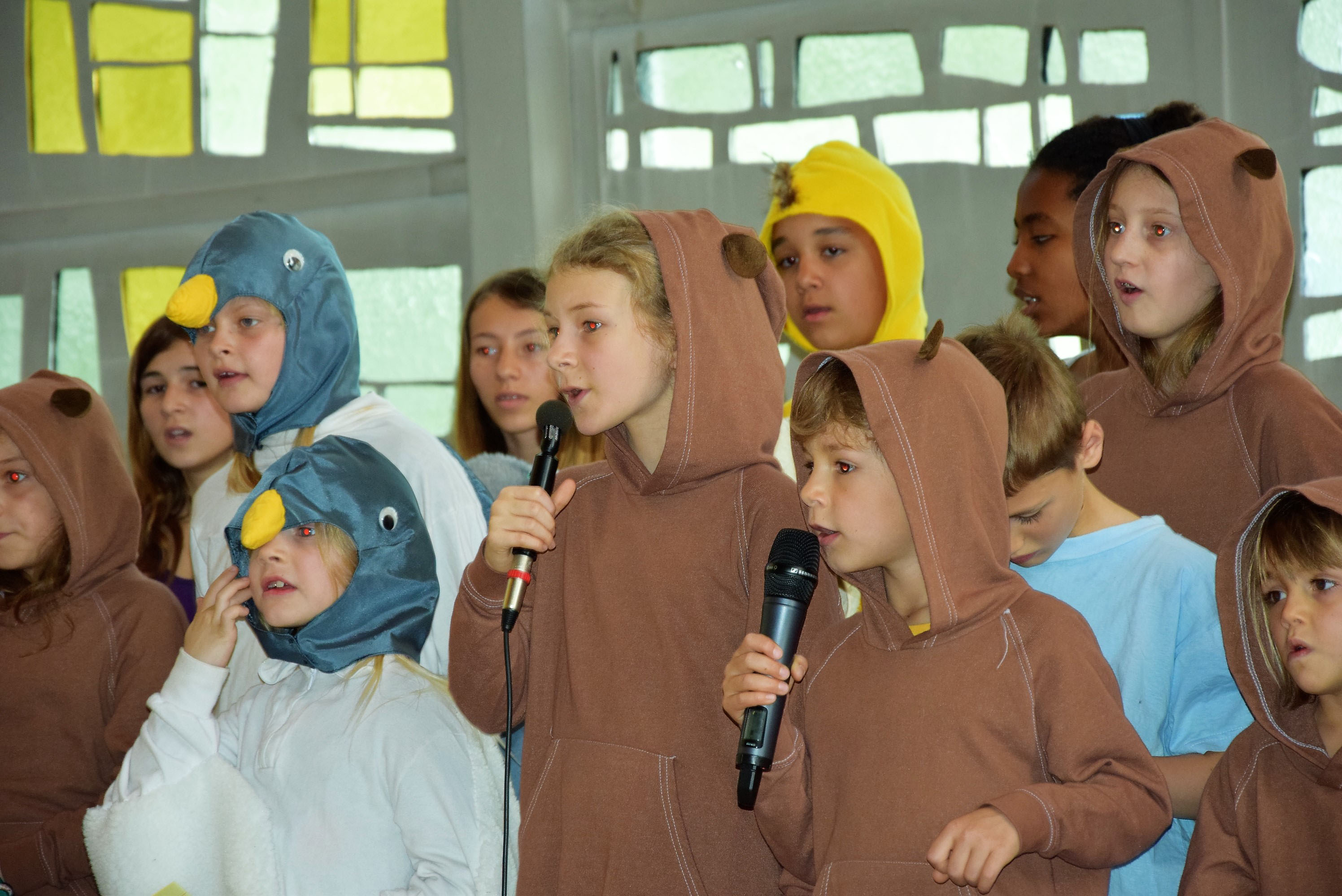 In einem köstlichen Musical, das die Kinder in der Kinderwoche – diese wurde von der reformierten Kirche angeboten – eingeübt hatten, erzählten sie in Liedern, Mimik, Tänzen und akrobatischen Einlagen die Geschichte der Familie Otter, deren Kinder dank der weisen Eule und des weissen Hirsches wundervoll errettet wurden. Fazit: Einer wacht über uns.