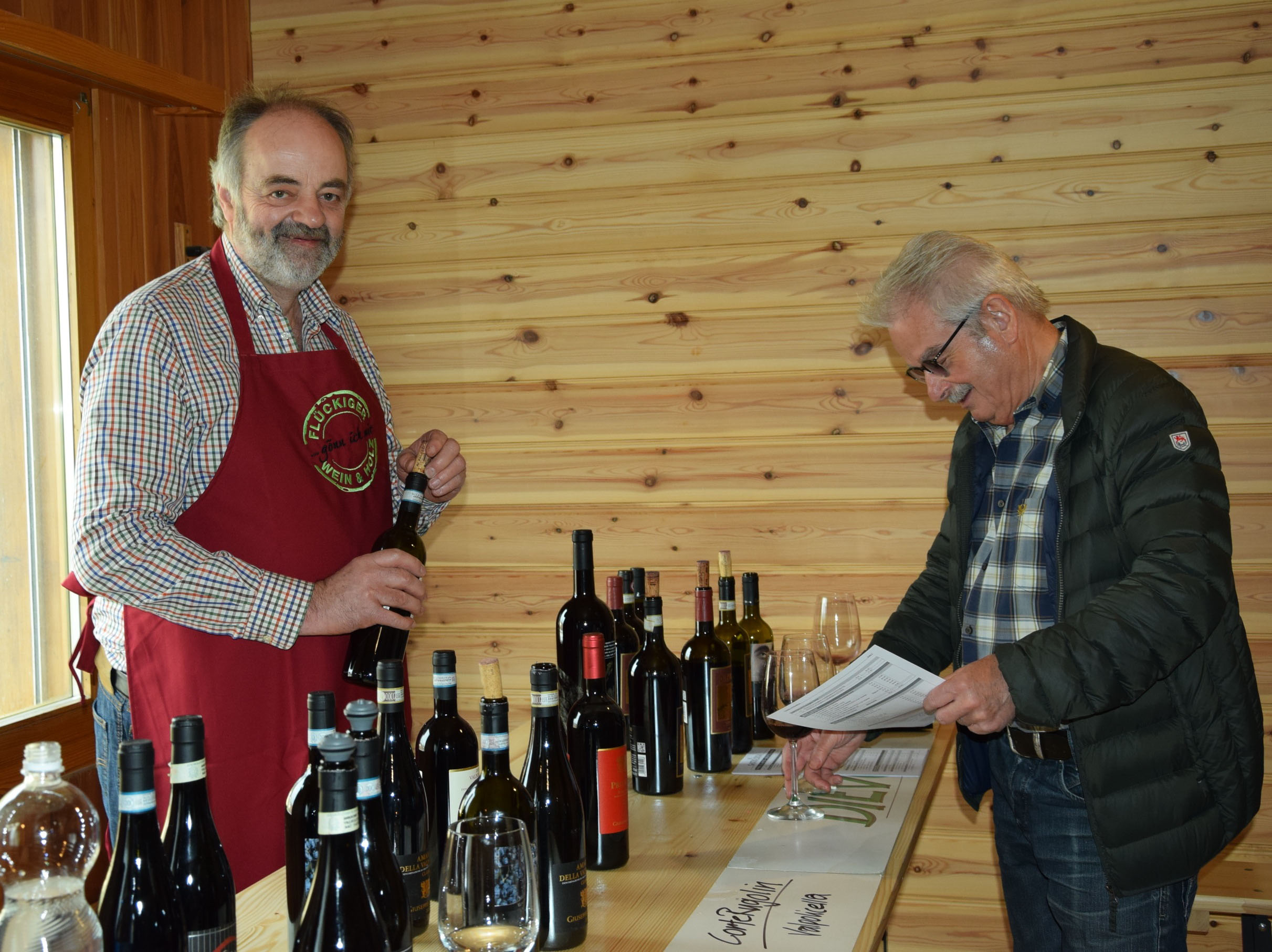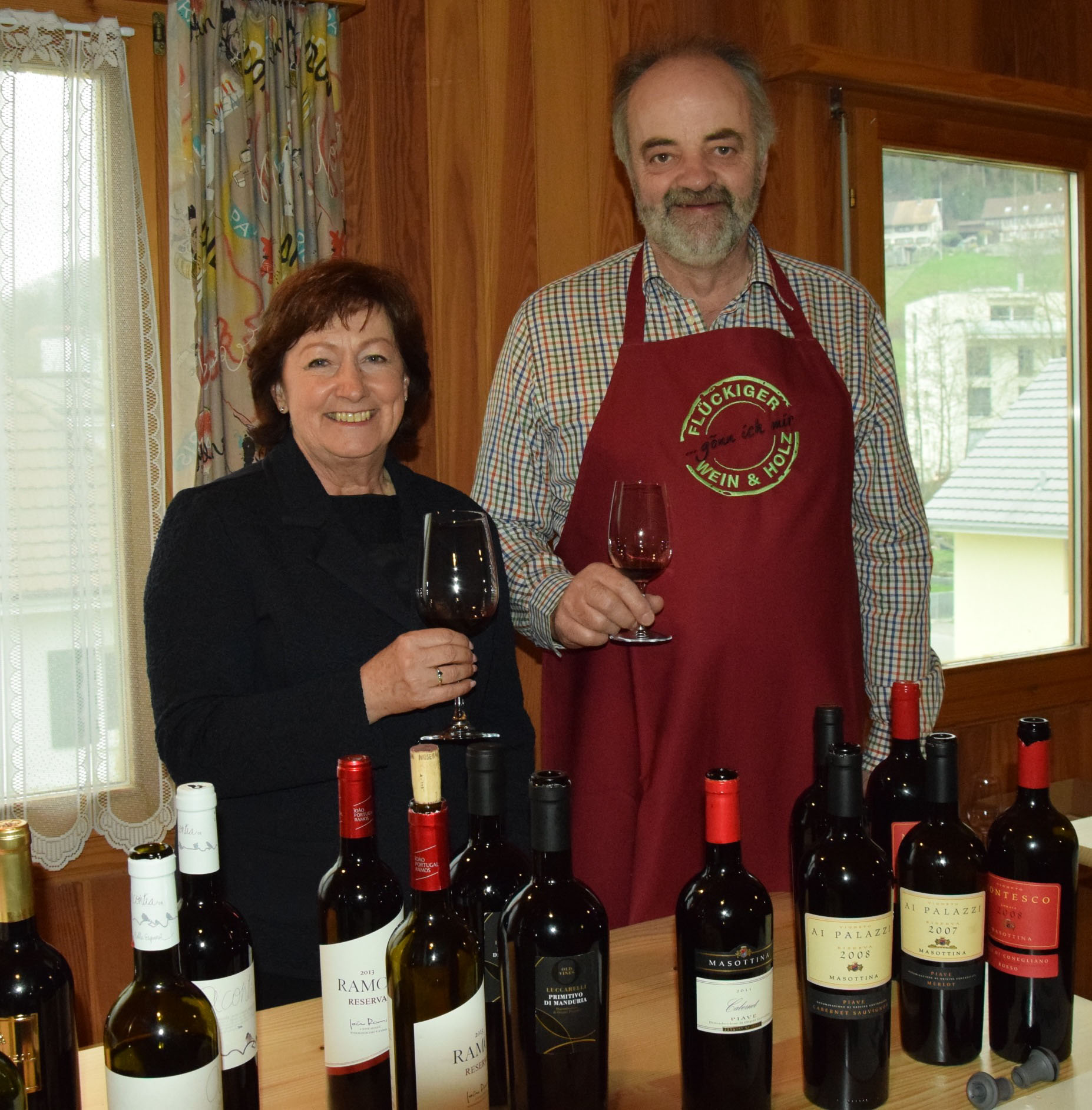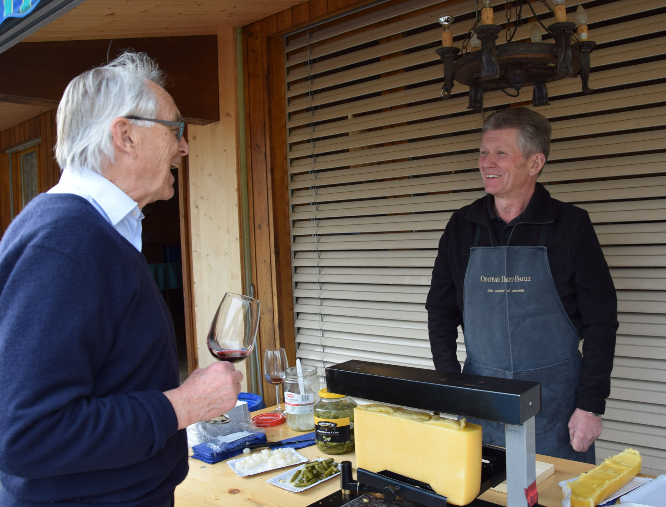 Inmitten wertvoller Hölzer in der firmeneigenen Ausstellung liessen Hanspeter und Sylvia Flückiger-Bäni aus Schöftland ihre Gäste die besten Weine aus verschiedenen Provenienzen in lockerer Geselligkeit kosten. Auf der grossen Veranda draussen konnten sie dazu ein feines Raclette geniessen, zubereitet vom Käsefachmann Bernhard Gafner.