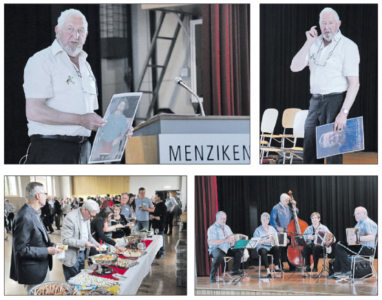 Im Gepäck Geschichten von seinen Schmöcker-Kollegen und wie man seriöse Wetterprognosen heutzutage wirklich macht. Der Sommer werde lausig, der Juli allerdings so heiss, dass es in der Badi stinkt, wegen der Schweissfüsse.Weiter gilt es als gesichert, sagte Bürgler, dass es am 15. Oktober Nebel geben wird. «Die wo da wönd uufschriibe, chöne da mache» – Hiermit geschehen. Auch die sechste Auflage des Menzo-Treffs bot über 100 Gästen Begegnungsmöglichkeiten, der Hauptgrund für die Veranstaltung, wie Gemeindeammann Anette Heuberger unterstrich. Vorzumerken sei der 2. Mai 2017, dann findet der nächste Menzo-Treff statt.