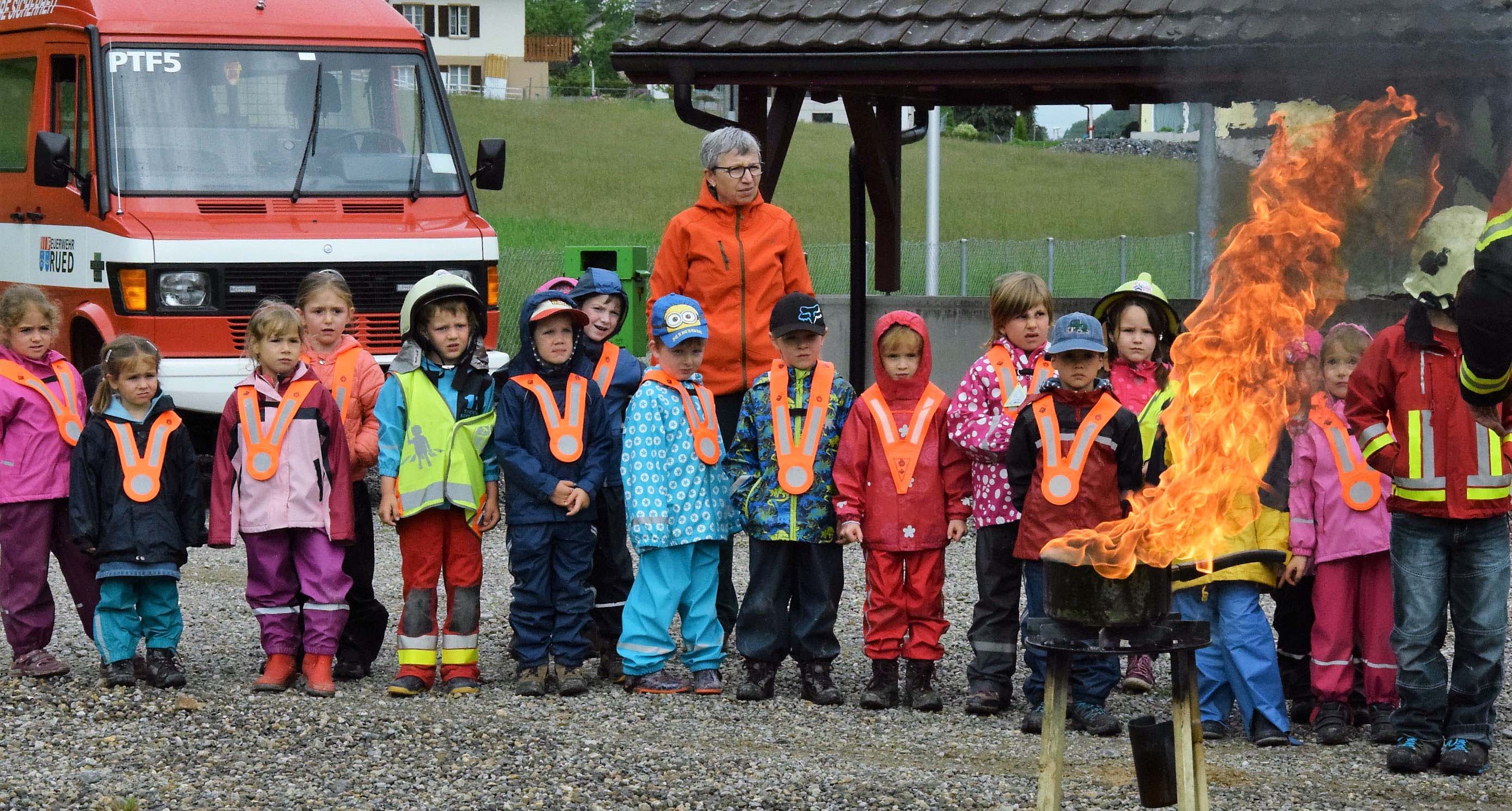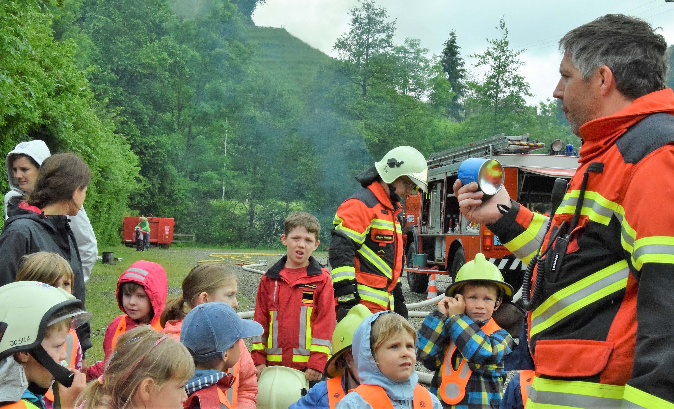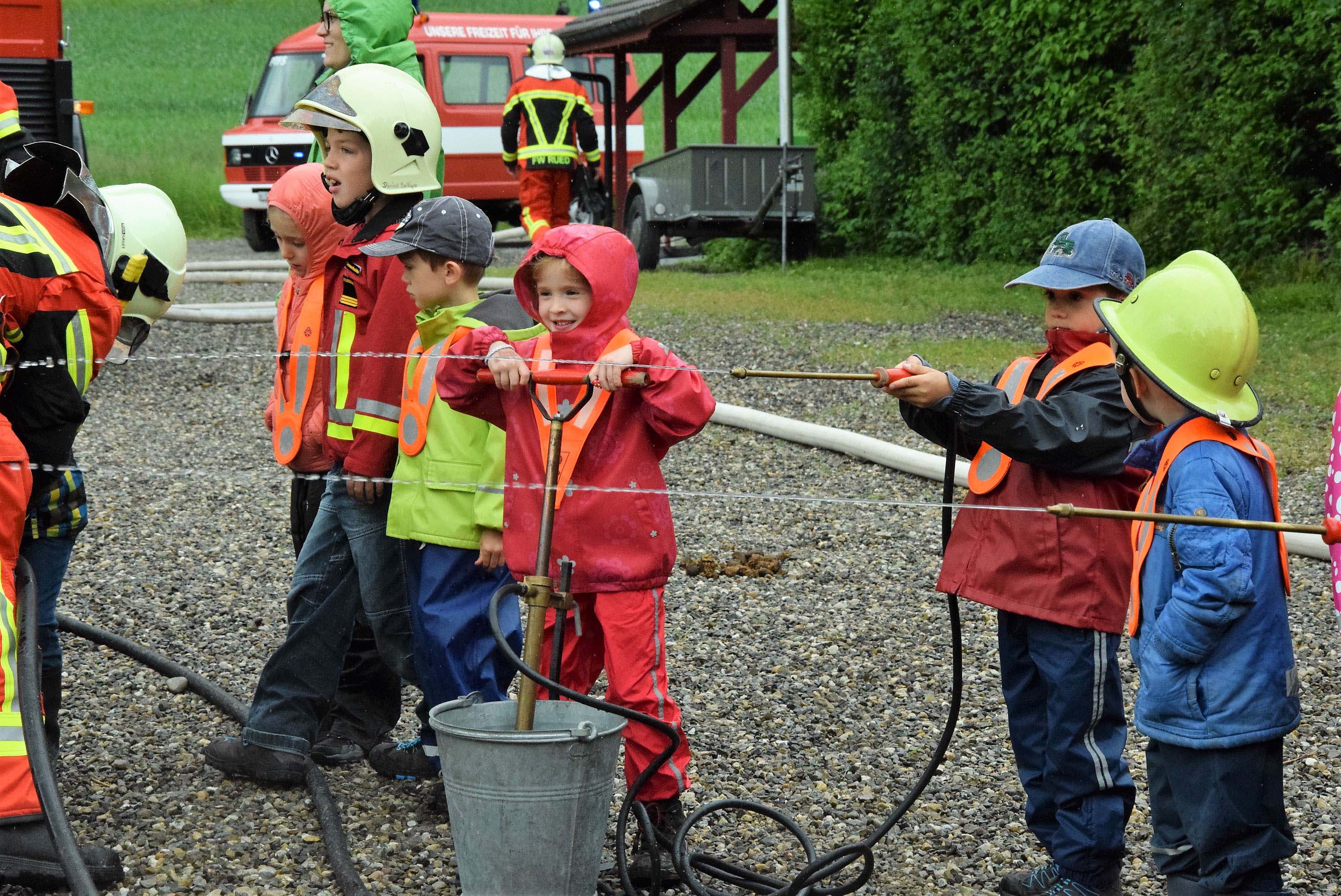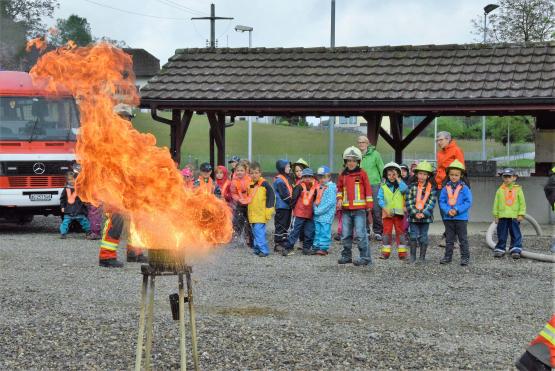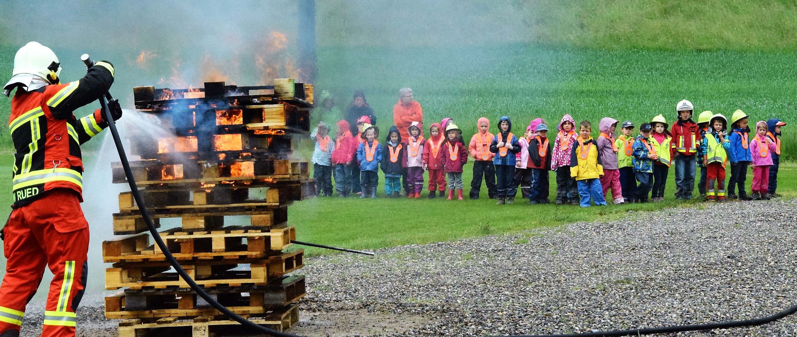 Kaderleute der Feuerwehr Rued luden die beiden Kindergärten Schmiedrued-Walde und Schlossrued zu einem interessanten und spannenden Morgen ein. Die Kinder durften emsig mitarbeiten und verschiedene Brände löschen. Dabei erkannten sie Segen und Fluch von Feuer und Wasser, und sie wissen inskünftig ganz genau, was im Notfall zu tun ist.