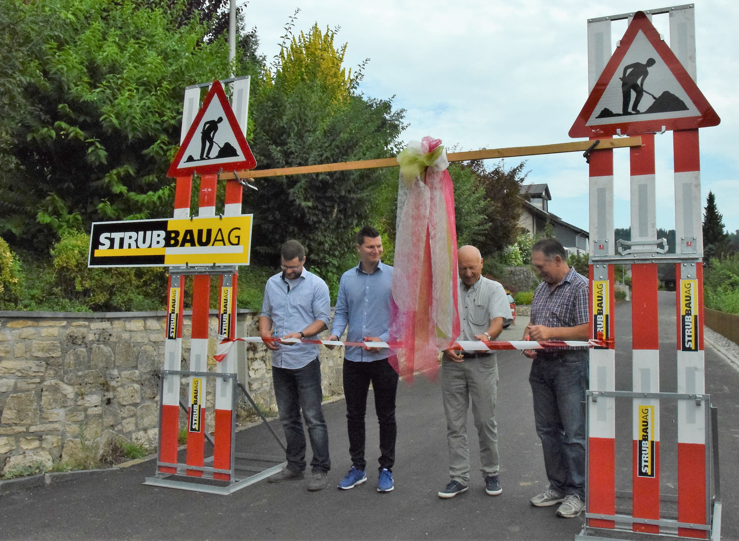 In zwei Etappen hat die Gemeinde Hirschthal die Untere sowie später die Obere Rainstrasse/Eggstrasse erneuert, ausgebaut und mit neuen Werkleitungen versehen. Ein Vierteljahr vor Termin darf nun die Strasse wieder benützt werden, was für die Anwohner Grund für ein kleines Einweihungsfest mit Behördenmitgliedern und Bauverantortlichen war.