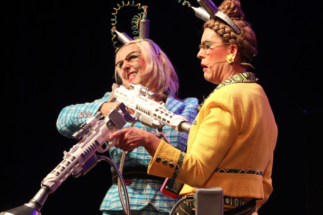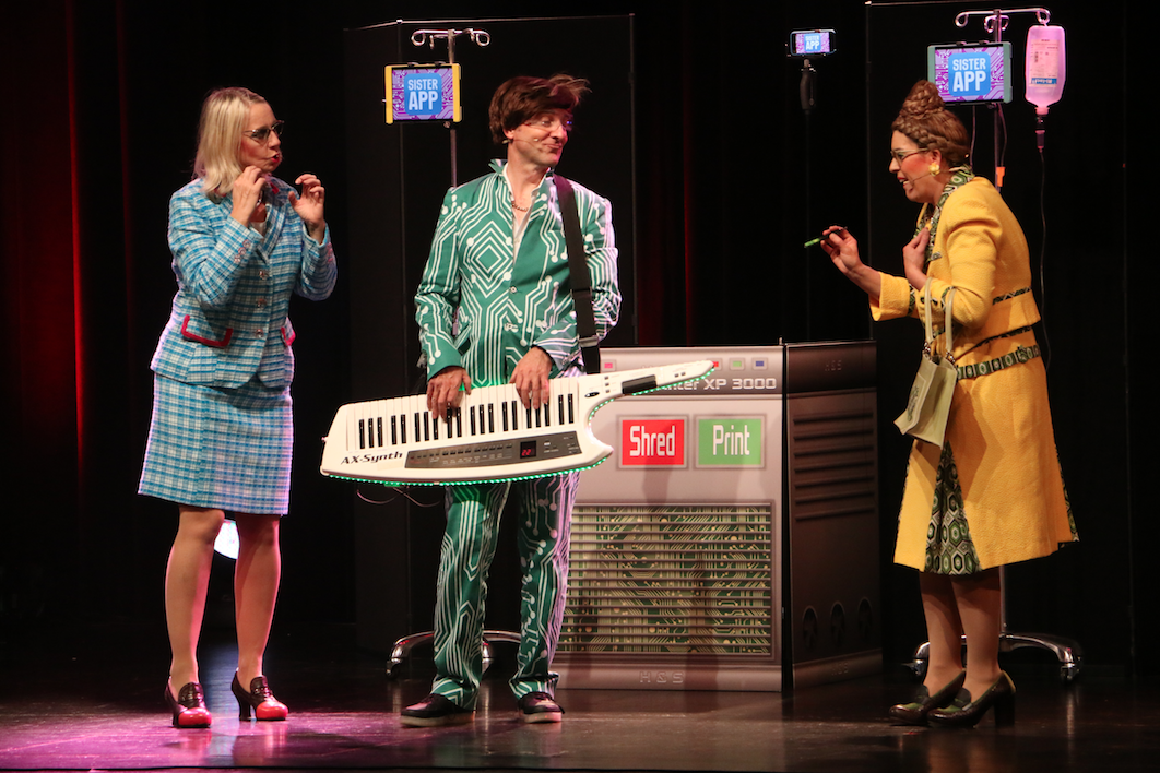 Zu ihrem zwischenzeitlichen Zuhause haben die beiden Komödiantinnen den Saalbau in Reinach auserkoren und erbrachten in ihrem Programm «SisterApp» den Beweis, dass man sich mit den technischen Errungenschaften von heute alles von zuhause aus erschaffen kann, sogar den Mann seiner Träume. Ihren umwerfend schwäbischen Dialekt mischte Barbara Hutzenlaub (Fritz Bisenz) diesmal mit einer Art Schweizerdeutsch; schliesslich hat sie eben erst den Roten Pass bekommen. Jetzt noch den richtigen Mann finden – doch woher stehlen, wenn nicht den Staubwedel «RoboMop» nehmen? Zum Glück hat Lotti Stäubli (Jasmin Clamor) die richtige App erfunden: Mit ein paar Klicks entspringt dem 3D-Drucker der spanische Schönling «Ignazio» (Marino Bernasconi), der sogleich «Besame mucho» trällert und die beiden Frauen in jeder erdenklichen Zweideutigkeit in Verzückung versetzt.