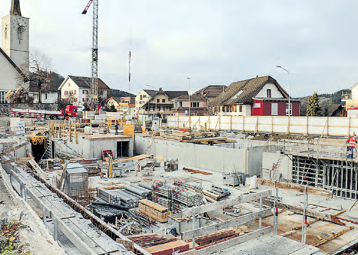 Dank der reibungslosen Abläufe im Herbst liegt das Bauprojekt im Dorfzentrum von Rickenbach gut in der Zeit. Sobald sich die Wetterbedingungen verbessern wird die Arbeit wieder aufgenommen. Bauherr Peter Häfeli ist zufrieden mit dem Fortschritt und äussert sich zur Idee hinter dem grossen Bauprojekt.