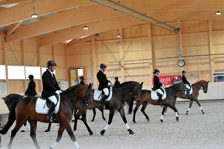 Gleich morgens um 10 Uhr starteten die Vorführungen, die übrigens alle live in Bild und Ton auf zwei grosse Bildschirme direkt ins Festzelt übertragen wurden. Der erste Showblock war den kleinsten Vertretern unter den Pferden gewidmet, den Ponys. Nach der Demonstration des Hippolini- Ausbildungskonzeptes für Kinder folgte ein Pas-de-Deux mit zwei Ponys am Langzügel. Für den Jöööö- Effekt sorgte dann der Ponyhof Schwarzenberg, welcher seine Connemarazucht vorstellte und dabei drei Stuten mit Ihren Fohlen zeigte. Rasant ging’s bei den Mounted Games zu, wo Jugendliche sich mit Ihren Ponys ein packendes Stafetten-Rennen lieferten.