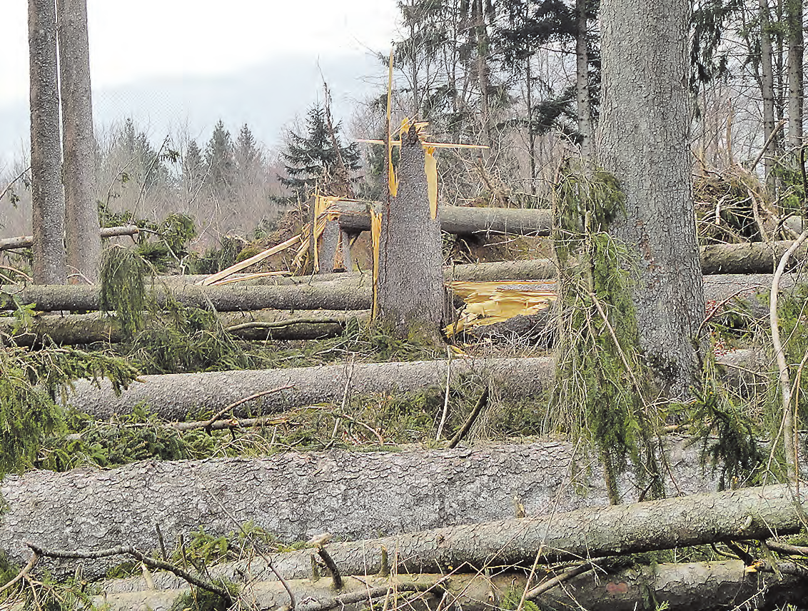 be. Bald ist ein Vierteljahr vergangen, seit «Burglind» am 3. Januar über unser Land gezogen ist. Dank vielen Forstwarten und Waldarbeitern in der Region sind die Waldstrassen trotz punktuellen Schäden überall wieder begehbar. Dass in den Wäldern noch viel Arbeit wartet, vermittelt unser Bild vom Pfeffiker Stierenberg. Tannen wurden entwurzelt oder wie Streichhölzer geknickt. (Bild: be.)
