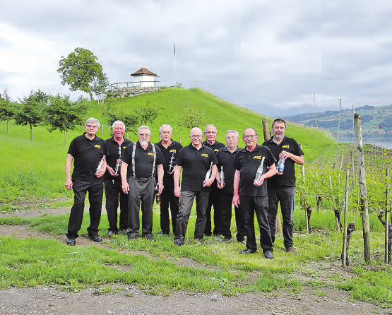 (Eing.) Die Frühlingsdegustation auf dem Hof Kaiserspan oberhalb Hitzkirch hat Tradition. Doch im vergangenen Jahr wurde der Anlass dank Ueli Rodel, einem langjährigen Mitarbeiter in den Reben, um eine Facette erweitert. Als Mitglied des Männerchor Burg kam er auf die Idee, ein kleiner Auftritt würde doch zur Stimmung passen. Gesagt, gesungen, beklatscht und so war der Männerchor auch am vergangenen Mittwoch wieder mit dabei. Zu den Klängen von «My Eveline» oder «Wonderful World» liess es sich trefflich einen der Weine oder Edelbrände aus dem reichhaltigen Kaiserspan-Angebot kosten und geniessen. (Bild: zVg.)