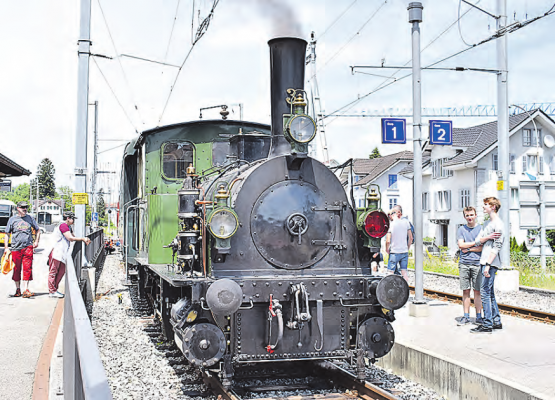 hg. Das unverkennbare Rattern, das Zischen, Pfeifen, Quietschen und der ganz besondere Geruch in der Luft verrieten es schon von Weitem, die Dampflokomotive ist unterwegs. Am Böjuer Dorffest lag ein Hauch von Nostalgie in der Luft, denn der Verein Historische Seethalbahn hatte die «Beinwyl» aus dem Depot geholt und lud mit der alten Dame zur Rundfahrt ein. Eine solche liess nicht nur die Herzen von Eisenbahnfans höher schlagen, eine Fahrt mit der Dampflok ist ein Erlebnis für Gross und Klein. (Bild: hg.)