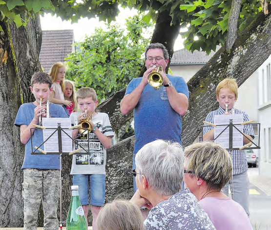 moha. Am nationalen Tag der Musik verwandelte sich der Schulhausplatz in Unterkulm in eine kleine Festwirtschaft mit Open-Air-Bühne. Schon zum zweiten Mal luden die Jugendmusik Kulm und die Musikschule Kulm gemeinsam ein zum «Fürobe-Apéro» mit Musik und der Anlass stiess auch diesmal auf erfreuliches Interesse. Mit einer Fanfare eröffneten die Bläser das Konzert. Weiter traten ein Blockflötenensemble, ein Pianoensemble und die Jugendmusik auf. Sogar Petrus spielte mit und belohnte die Darbietungen der jungen Musikantinnen und Musikanten mit strahlendem Sonnenschein. An den Verpflegungsstationen wurden Würste vom Grill und Hot Dogs angeboten, so dass an diesem klangvollen Abend auch niemand hungrig nach Hause gehen musste. (Bilder: moha.)