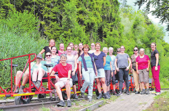 (Eing.) An einem schönen August-Morgen traf sich die muntere Frauenschar vom DTV Hirschthal auf eine abenteuerliche Reise nach Neuenegg. Nach einer Kaffeepause ging es zu Fuss durch den Wald in Richtung Schloss Laupen. Etwa in der Mitte, beim schönen Aussichtspunkt, stärkten sich die Damen mit einem kleinen Heimwehtröpfchen. Am Schloss angekommen, wurde dann eine Mittagspause eingelegt und das leckere Mittagessen aus dem Rucksack verspiesen. Die Schlossbesichtigung und die Aussicht waren atemberaubend. Anschliessend strampelten alle mit den tollen Schienenvelos nach Witteberg. Weiter ging es mit der Sportart Platzgen, in welcher Gewichtssterne ins zehn Meter entfernte Ziel geworfen werden müssen. Ebenfalls absolvierten die Frauen den Blasrohrsport und konnten Trompetengeräusche nicht…