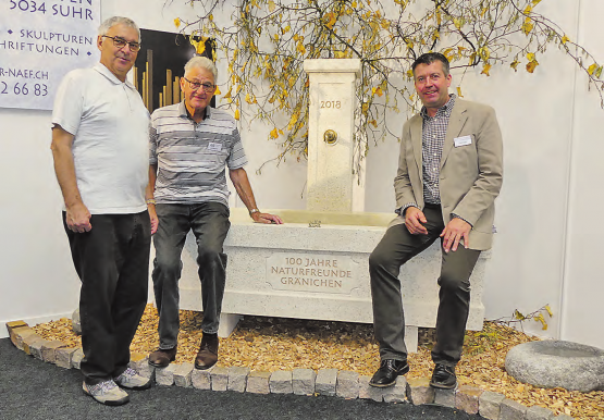moha. Der Verein «Naturfreunde Gränichen» wurde im Mai 1918 gegründet und verfolgt seit jeher den Zweck, Bänkli und Brunnen an geeigneten Plätzen in Gränichen zu erstellen. Aktuell unterhalten die Vereinsmitglieder über 100 Bänkli, 12 Rastplätze mit Feuerstellen und 17 Brunnen mit fliessendem Wasser, wovon 12 aus eigenen Quellen gespiesen werden. Zum 100-Jahr-Jubiläum hat Bildhauer Timo Näf aus Suhr (re. im Bild) ein weiteres Exemplar mit einem grossen Brunnentrog geschaffen. Auch der neue Brunnen, – passend zur Jahrzahl 2018 die Nr. 18 in der Vereinsgeschichte, – hat eine eigene Quelle und ersetzt an seinem Standort einen Vorgänger, der nach einem Vandalenakt leider entfernt werden musste. Der schöne neu gestaltete Rastplatz mit dem stolzen Jubiläumsbrunnen befindet sich an der…
