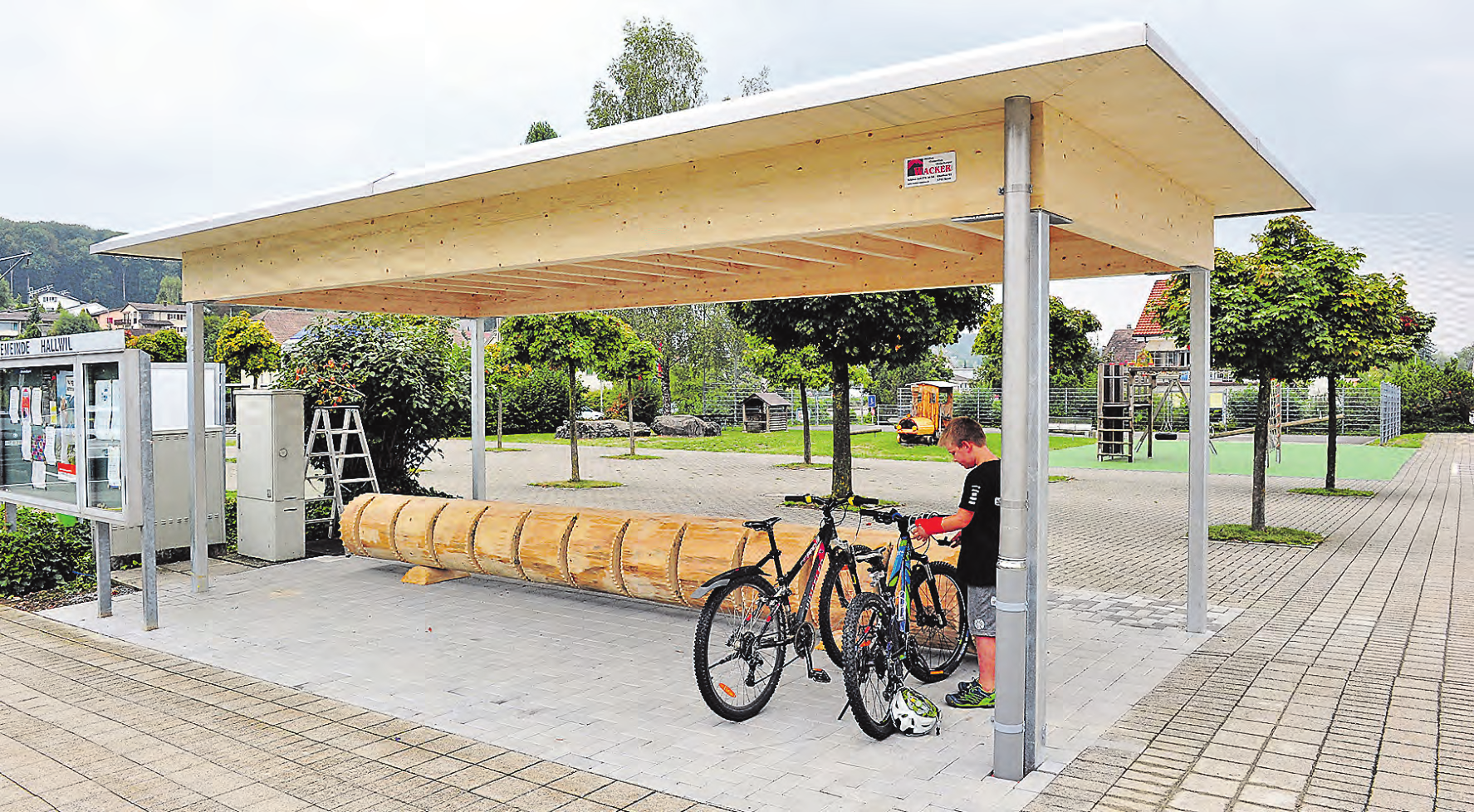 msu. Anlässlich der «Haubuer Chilbi» vom letzten Wochenende konnte auch ein Lehrlingsprojekt eingeweiht werden. Es handelt sich um einen währschaften, aus einem Baumstamm gefertigten Veloständer, mit Standort beim Schulhaus. Das dafür verwendete Holz – auch jenes für die Überdachung des Unterstandes – handelt es sich um Bäume, die im Januar 2018 dem Sturmtief «Burglind» zum Opfer gefallen sind. Die Orkanböen fegten damals mit grosser Energie über Europa hinweg und hinterliessen auch in Wäldern von Hallwil unübersehbare Spuren. Die MacherInnen der «Haubuer-Chilbi» hatten die zündende Idee, das Holz nicht einfach liegen zu lassen, sondern die geknickten Bäume für ein Lehrlingsprojekt einzusetzen. Schon bei der Erstauflage der «Chilbi» im Jahr 2014 legten sich Lehrlinge ins Zeug und…