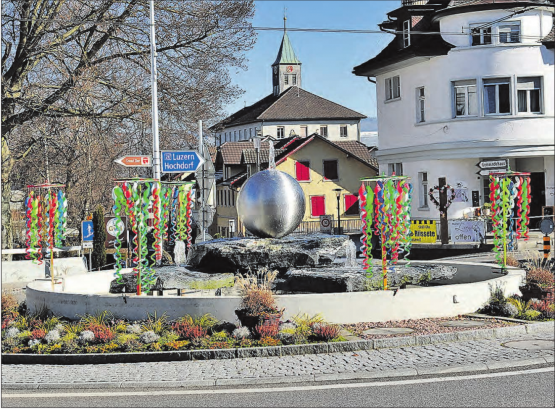 msu. Die legendäre Braui-Fasnacht gibt es in Beinwil am See leider seit Jahren nicht mehr. Das Restaurant und mit ihm andere Traditionshäuser im Dorf haben leider längst dicht gemacht. Immerhin: Ganz leer gehen die Fasnächtlerinnen und Fasnächtler nicht aus. Rund um den Verkehrskreisel am Löwenplatz ist es ganz schön farbig geworden. Für originelle Hingucker sorgen überdimensionale Bändel, die munter im Wind flattern und dem Brunnen mit seinem Wasserspiel ein buntes Kleid ermöglichen. Möglicherweise bereits die ersten Vorboten der Fasnacht? (Bild: msu.)