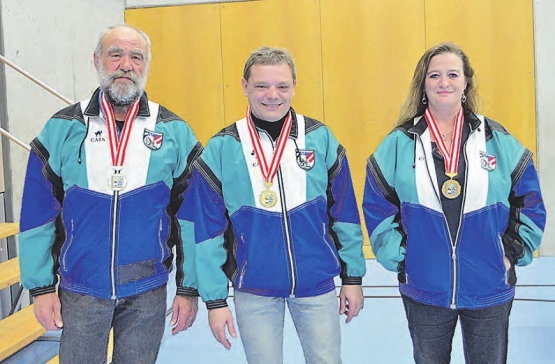 (Eing.) Anlässlich der Delegiertenversammlung des Bezirksschützenverbandes Zofingen in Reitnau wurden die Gewinner der Bezirksmeisterschaft 2018 ausgezeichnet. Bei der Kategorie A (alle Gewehre) gingen alle 3 Medaillen an Mitglieder der Feldschützengesellschaft Moosleerau.Was sicher einen Meilenstein in der Vereinsgeschichte bedeutet. 1. Rang Max Wälty 536 Punkte; 2. Rang Willi Huwiler 536 Punkte; 3. Rang Barbara Eichenberger 533 Punkte. (Bild: zVg.)