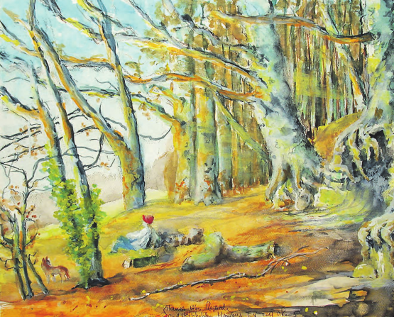 Text und Aquarell mit Mischtechnik 50x60cm EA 2017. Über Wynental Reinach Leimbach Sandsteinbrüche Homberg von Alberto Romer, Beinwil am See