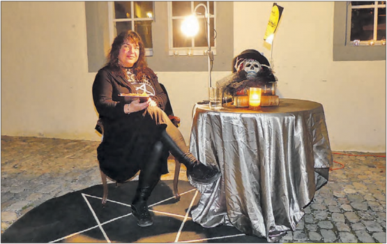 moha. Freitag der 13. und Vollmond, – eine wahrlich (be-) geisternde Voraussetzung für Geschichten und Sagen über Geister und Hexen. Wicca Meier-Spring, die Leiterin des Hexenmuseums auf der Liebegg, war zweifelsohne prädestiniert als begeisterte Erzählerin. Eine volle Stunde liess sie die Besucher eintauchen in alte Überlieferungen aus vergangenen Zeiten und verstand es, die Episoden mit eigenen Erfahrungen und selber erlebten Geschichten zu bereichern. So lernte die zahlreich erschienene Zuhörerschaft aller Altersklassen den Schlossgeist und sein Treiben kennen. Ihm zu Ehren wurde im Hexenmuseum ein Spukzimmer eingerichtet. Besucher sollen ihm auch schon begegnet sein.Wicca Meier kann ihn riechen, hören und spüren. Auch zwei weibliche Geister sollen in der Nähe schon gesehen worden…