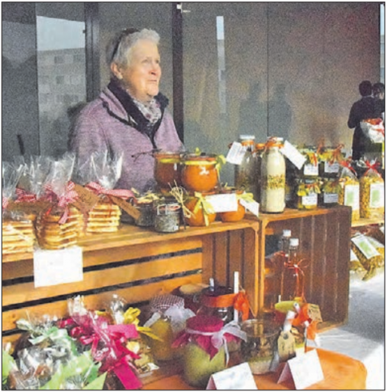 st.Wenn die Landfrauen von Staffelbach jeweils im September die «Früchte des Sommers» im Rahmen eines grossen Herbstmarktes präsentieren, steht definitiv der Herbst vor der Tür. Sie begnügen sich jedoch nicht damit, Obst, Früchte, Gemüse und Brot zu verkaufen, sie bieten auch einen währschaften «Zmorgeteller» an mit einheimischen Produkten aus den Landfrauenküchen. Brot wird vor Ort im Holzofen gebacken, und eine bunte Blumenpracht, in wunderschöne Arrangements verarbeitet, wartet auf Käuferinnen und Käufer. Und der Duft nach frischen Brätzeli, welcher über dem Turnhallenareal liegt, ist geradezu betörend – man muss einfach hin und etwas kaufen. Unsere Bilder zeigen die farbenfrohe Auslage selbstgemachter Konfitüren, Teigwaren und zum Teil exotischer Saucen sowie Christine Schönbächler…