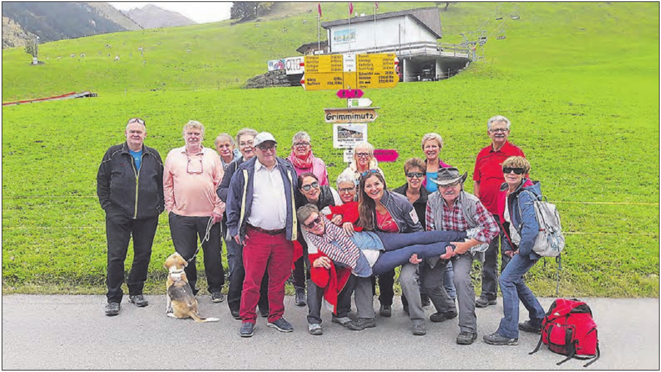 (Eing.) Ein goldener Herbsttag versprach es zu werden – und so war es auch. Wie im Bilderbuch zeigten sich die orangeroten Blätter der Bäume entlang der Wanderung im Diemtigtal/BE am vorletzten Samstag. Fitness an der frischen Luft tut allen gut. So wanderte die halbe Turngruppe mit Partnern und Freunden bis zur Grimmialp auf 1235 m.ü.M. Auf dem Bild trägt diese die Turngruppengründerin und langjährige Leiterin Greti verdient auf Händen. Am Morgen, beim Treffpunkt in der Ortschaft Oey, zeigte das Thermometer noch eine tiefe, einstellige Zahl, weshalb sich alle vorerst mit Kaffee und Gipfeli verpflegten. Bis nach «Anger» fuhr der Bus und die Wanderung zog dann dem malerischen Bach entlang, gemütlich hinauf zum kleinen Blauseeli bei der Grimmialp und weiter zum verdienten Zmittag im…