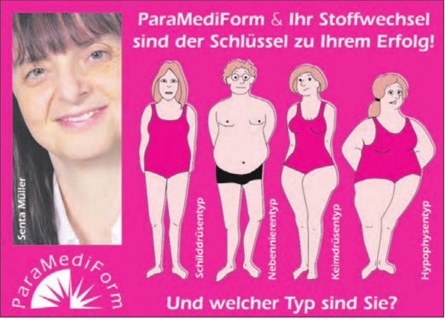 Die ParaMediForm-Methode hat schon vielen Frauen, Männern und Jugendlichen geholfen schlank zu werden und es auch zu bleiben. Gemeinsam mit Senta Müller werden Ziele gesetzt, welche erreichbar sind, ohne…
