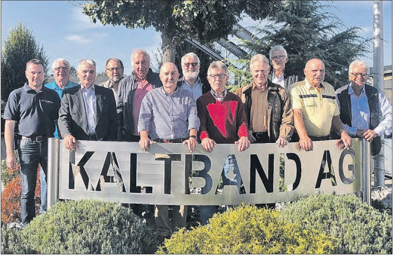 Red. Die Zeit rennt uns allen davon … und sogar ehemalige Spitzensportler haben Mühe, mit dem rasanten Tempo Schritt zu halten. So auch die einstigen «Starfussballer» des FC Reinach, die sich kürzlich wieder einmal zu einem Wiedersehen trafen. Statt ein Fussballspiel stand ein Mittagessen auf dem Programm, bei dem natürlich die «goldenen sechziger Jahre» des Oberwynentaler 2.-Liga-Fussballs erneut für viel Gesprächsstoff sorgten. Unser Bild zeigt die damaligen «jungen Wilden», die mittlerweile auch ins Alter gekommen sind. Nach der Betriebsbesichtigung der Firma Kaltband AG im Reinacher Moos gab es ein Gruppenbild – just dort, wo sich früher ein Trainings- und Ausweichplatz des FC Reinach befunden hatte.