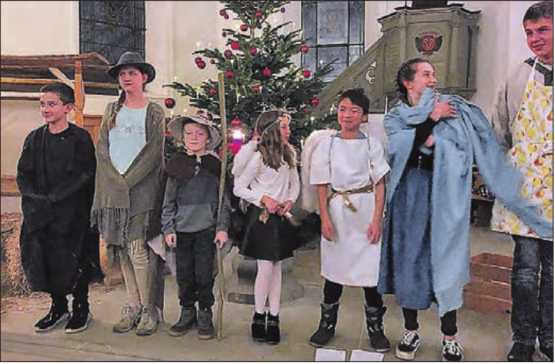 (Eing.) Wahrlich begann das diesjährige Krippenspiel auf spannende Art und Weise. Wurde man doch zu Beginn im Glauben gelassen, dass alle Schauspieler verschwunden seien. Gott sei Dank fanden sich dann jedoch mutige Darsteller und Darstellerinnen aus dem Publikum. Auf humorvolle und abwechslungsreiche Weise nahmen sie die Anwesenden mit auf die Reise von Maria und…