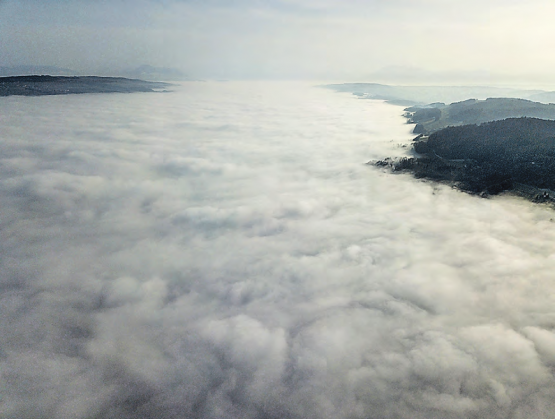 Red. Blick aus der Sonne auf das Nebelmeer am Samstag, 25. Januar im Seetal. Der Hallwilersee liegt genau unter dem Nebel. (Bild: Andreas Walter)