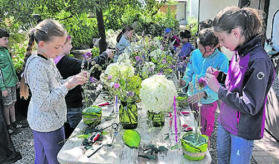 (Eing.) Im Blumen Atelier bei Nicole Widmer-Voramwald in Zetzwil durften die Kinder vom Ferienspass wunderschöne Blumenkörbe stecken. Um 09.30 Uhr waren zwölf Kinder bei ihr zu Hause. Nicole hatte von Andrea Haldemann Unterstützung. Zuerst haben wir mit einer Quarkschale ein schönes Töpfchen gemacht, indem wir grosse, grüne Blätter mit doppelseitigem Klebeband befestigt haben. Diese Blätter heissen Funkien. Damit die Blätter trotzdem nicht abfallen, haben wir (natürlich auch für schön) braune Schnur rundum gewickelt. Nicole hat uns erklärt, wie man die Blumen unten richtig anschneidet, dass sie länger schön bleiben. Damit die Blumen schön gerade stehen, bekamen wir einen Blumensteckschaum. Diesen haben Nicole und Andrea mit Wasser gefüllt, sonst würden ja die Blumen austrocknen! Beim…