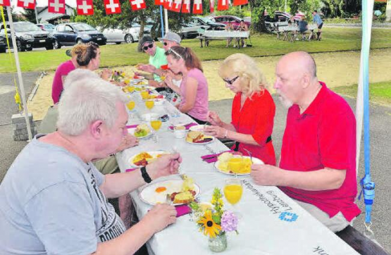 (Eing.) Der VVB Burg hatte sich entschlossen, den traditionellen 1.-August-Brunch auch in diesem Jahr durchzuführen, selbstverständlich unter den Bedingungen der vom BAG vorgeschriebenen Massnahmen, was unter anderem eine «dezentrale Sitzordnung» erforderte… Der Anlass war ein voller Erfolg, rund 80 Personen haben sich auf die «Rückkehr in die Dorfgemeinschaft» gefreut. Das reichhaltige Brunchangebot – vom Rührei, der Rösti über Fleisch- und Käsespezialitäten, verschiedene Brotsorten über Früchtebis hin zum Kuchenbuffet – fand grossen Anklang. Für die Kinder wurde ein kleiner Spielparcours aufgestellt und nicht nur die Kinder hatten ihre helle Freude an diesem Vergnügen. Der Mehraufwand seitens der Organisatoren hat sich gelohnt, die Anwesenden haben den Brunch in vollen Zügen genossen.…