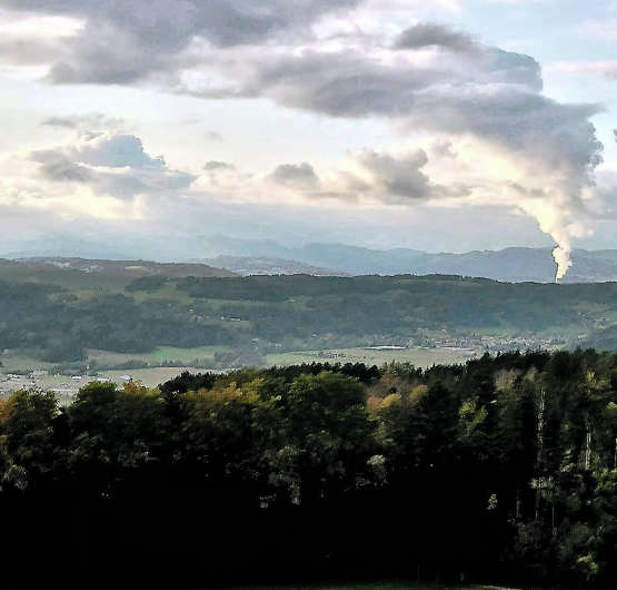 mars. Eindrücklicher Blick am vergangenen Montagnachmittag vom Hombergturm Richtung Nordwesten. Das Wynental wird von Wolken zugedeckt, welche ihren Ursprung im Kühlturm des Kernkraftwerks Gösgen zu haben scheinen. (Bild: mars.)