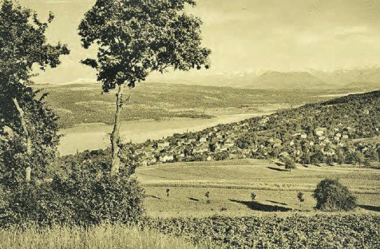 Historische Postkarte vom Seetal mit Standort am auf dem Homberg über Beinwil am See zirka 1930er-Jahre. Das Dorf ist noch ohne reformierte Kirche. Diese wurde erst 1935 eingeweiht. (Bild: zVg.)