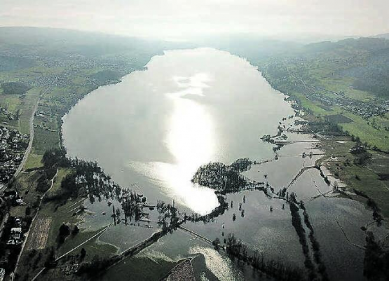 (Eing.) Mitte Januar fiel im Seetal über 30 Zentimeter Schnee, der vorerst liegen blieb. Ende Januar erfolgte ein Wärmeeinbruch mit ergiebigen Regenfällen. Der Niederschlag, kombiniert mit der Schneeschmelze, sorgte dafür, dass der Pegel des Hallwilersees stark anstieg und am nördlichen Ende die Felder überschwemmte. Dadurch hat sich der See augenfällig vergrössert. Dies wird deutlich sichtbar an den beiden Flugaufnahmen vom See, die den gleichen Ausschnitt zeigen. Die benachbarten Wiesen haben sich in einen See verwandelt, den die Möwen in Beschlag genommen haben. (Text und Bilder: Andreas Walker)